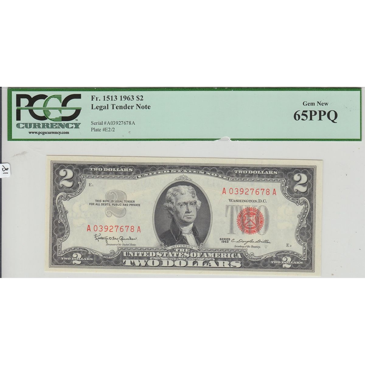 $2 RED SEAL 1963 PCGS GEM 65 PPQ