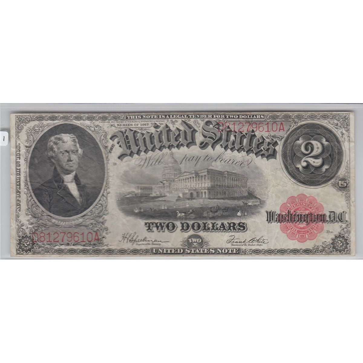 $2 RED SEAL LEGAL TENDER 1917 SHARP APPEALING NOTE