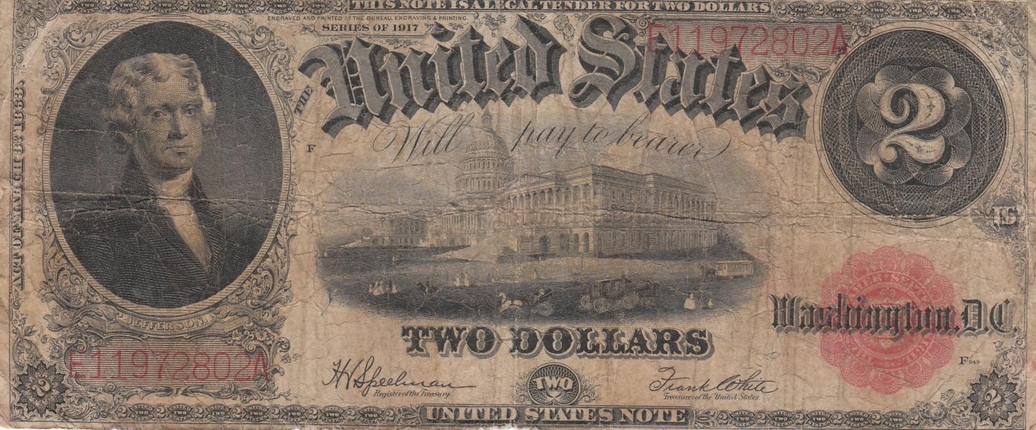 $2 RED SEAL LEGAL TENDER 1917