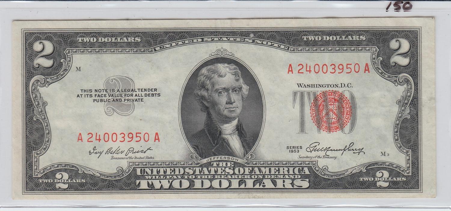 $2 RED SEAL LEGAL TENDER 1953 CHERRY RED