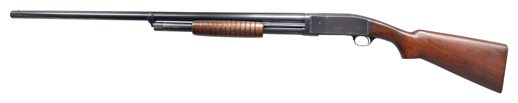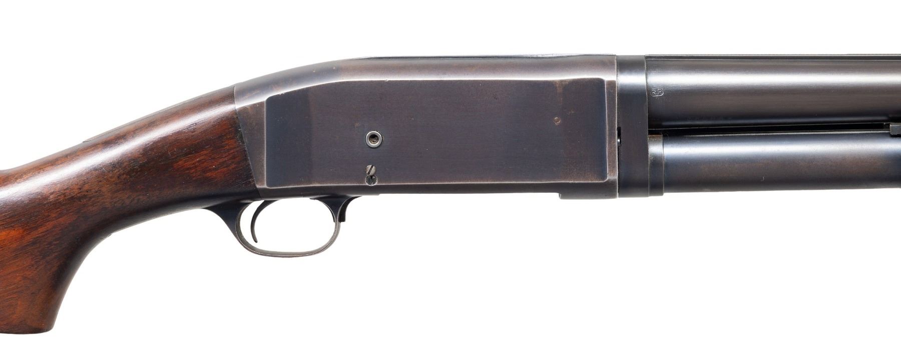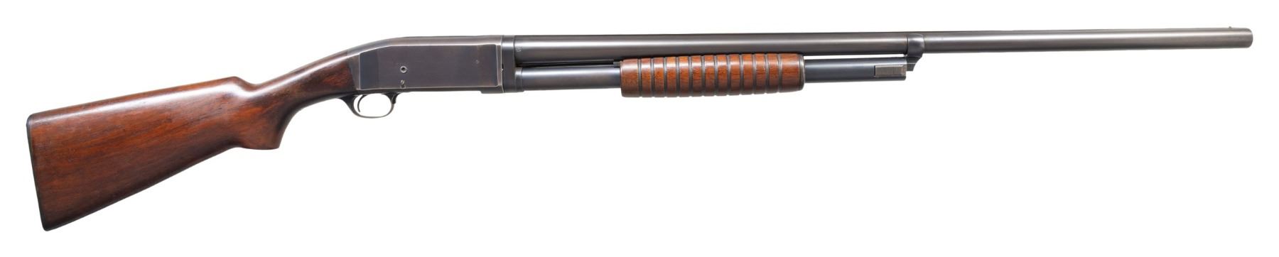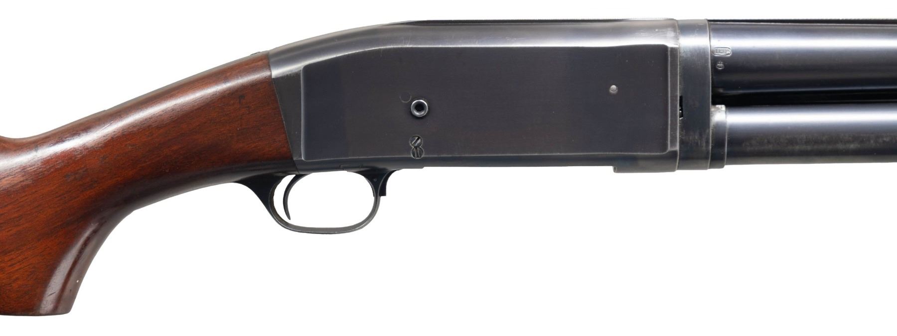 1) Cal. 12 GA. S# 262773. Bbl. 30 1/8". Model 10 pump action shotgun mfg. by Remington. Left side of the bbl. is marked with Remington's mfg. and patent information above a "FULL" choke marking. Left side of the receiver is marked with the Remington trademark logo above "MODEL 10" and the S#. Metal components exhibit a blue finish overall. Grooved wood pump and plain wood pistol grip buttstock with checkered black synthetic Remington UMC buttplate. Solid grooved matte rib with flattened brass bead front sight. CONDITION: metal components retain large amounts of their original factory blue finish, showing areas of wear and thinning that are fading to gray and brown patinas, scattered spots of light surface oxidation, as well as some superficial handling marks overall. Bright bore, exhibiting scattered small patches of mild to moderate pitting. Proper manual mechanics. Wood furniture shows scattered marks, scratches, and small impressions from handling and storage, with the buttstock exhibiting a light crack on the left side of the wrist stemming from the receiver. (25-4441/MLW). CURIO. $400-600. 2) Cal. 12 GA. S# 235051. Bbl. 32 1/8". Model 10 pump action shotgun mfg. by Remington. Left side of the bbl. is marked with Remington's mfg. and patent information above a "FULL" choke marking. Left side of the receiver is marked with the Remington trademark logo above "MODEL 10" and the S#. Metal components exhibit a blue finish overall. Grooved wood pump and plain wood pistol grip stock with Remington UMC checkered brown synthetic buttplate. Solid matte rib with aluminum bead front sight. Matching numbers are present on the receiver and bbl. CONDITION: metal components retain the majority of their original blue finish, showing some spots of light to mild wear and thinning (primarily along edges) and scattered spots of light surface oxidation. Very bright bore. Proper manual mechanics. Wood furniture shows scattered marks, scratches, and impressions from handling and storage, but otherwise remains sound. (25-4496/MLW). CURIO. $400-600.