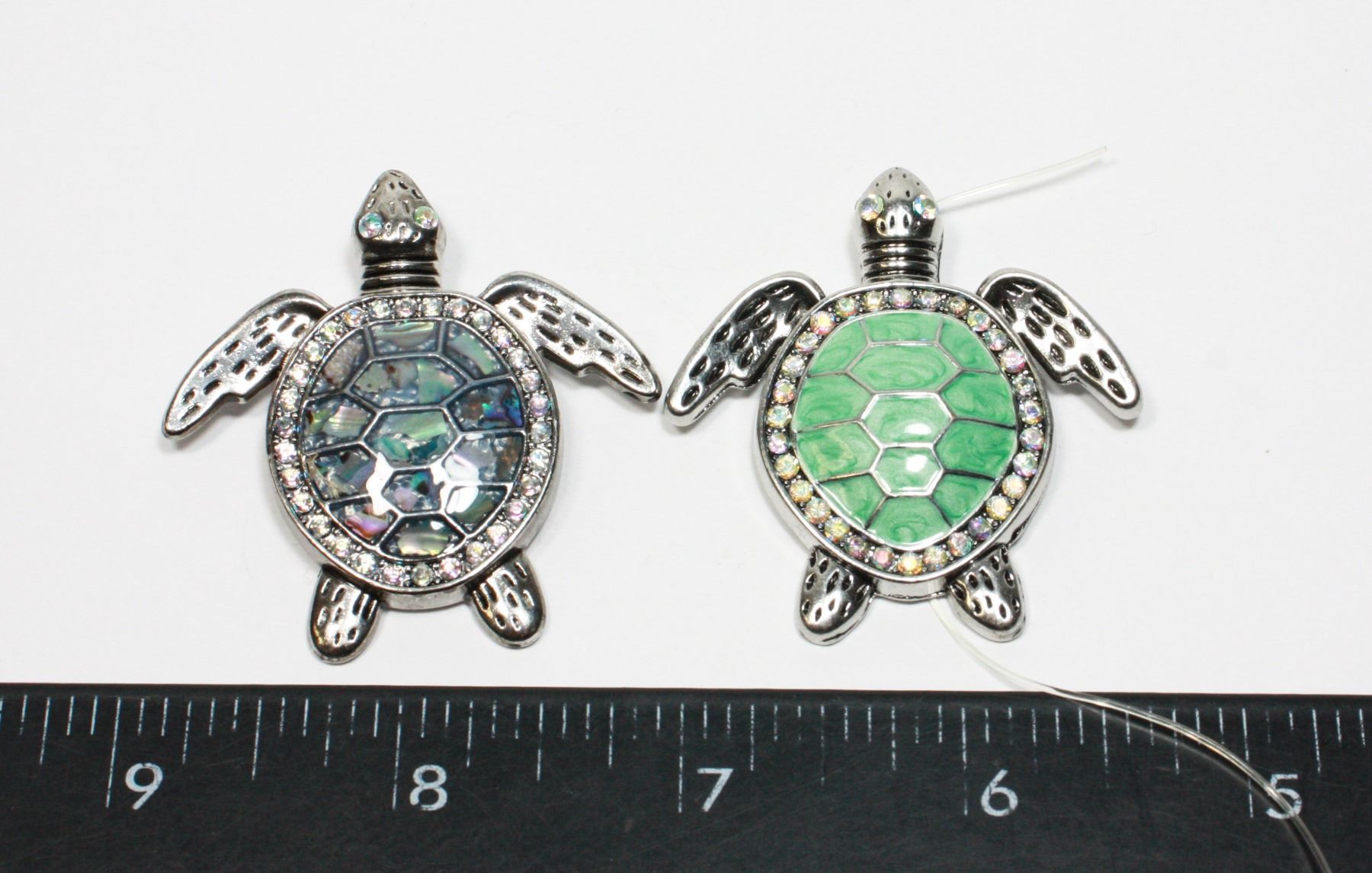 2 RHINESTONE SEA TURTLE PENDANT CHARMS