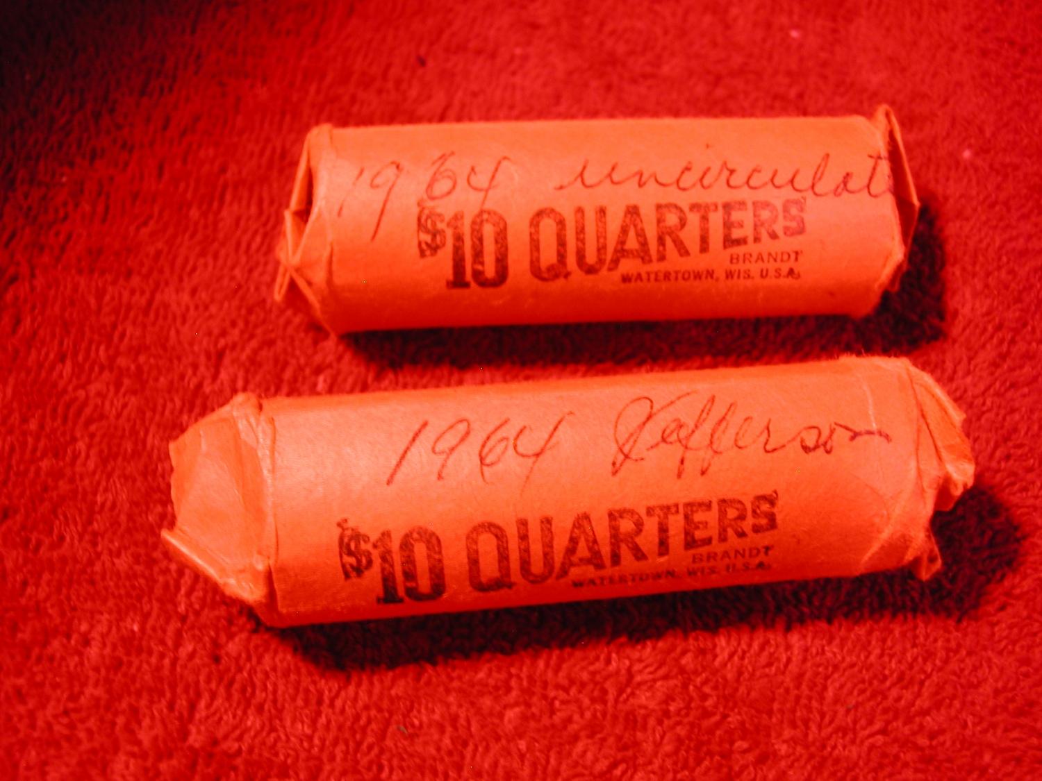 2 ROLLS 1964 QUARTERS - 1 SAYS UNC