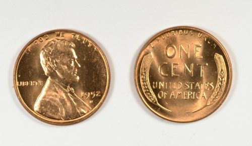 ( 2 ) ROLLS ( 50 ) COINS EACH 1952-D LINCOLN CENTS, GEM REM MS-64-67 COINS