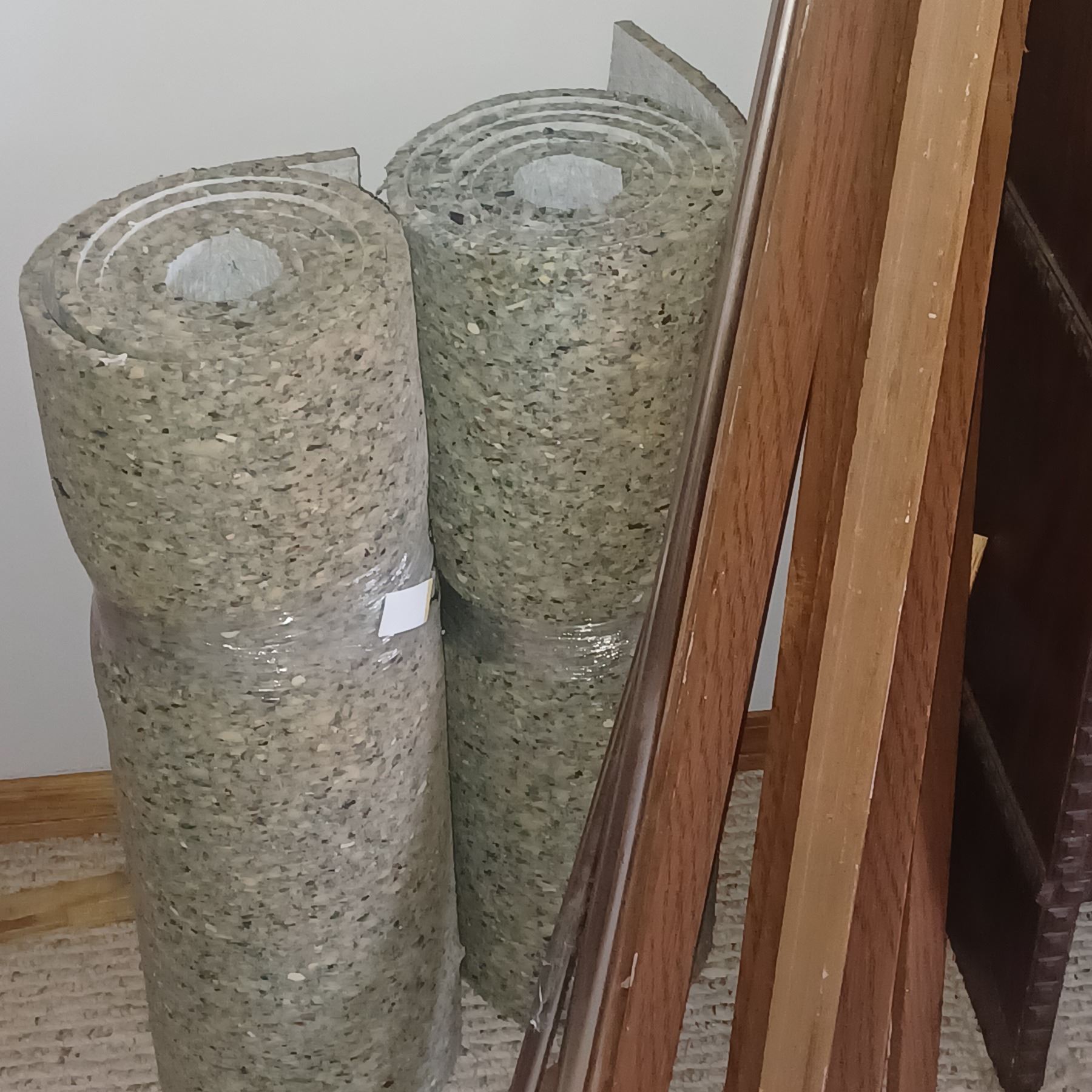 2 ROLLS OF UNDERLAY AND WOOD TRIM