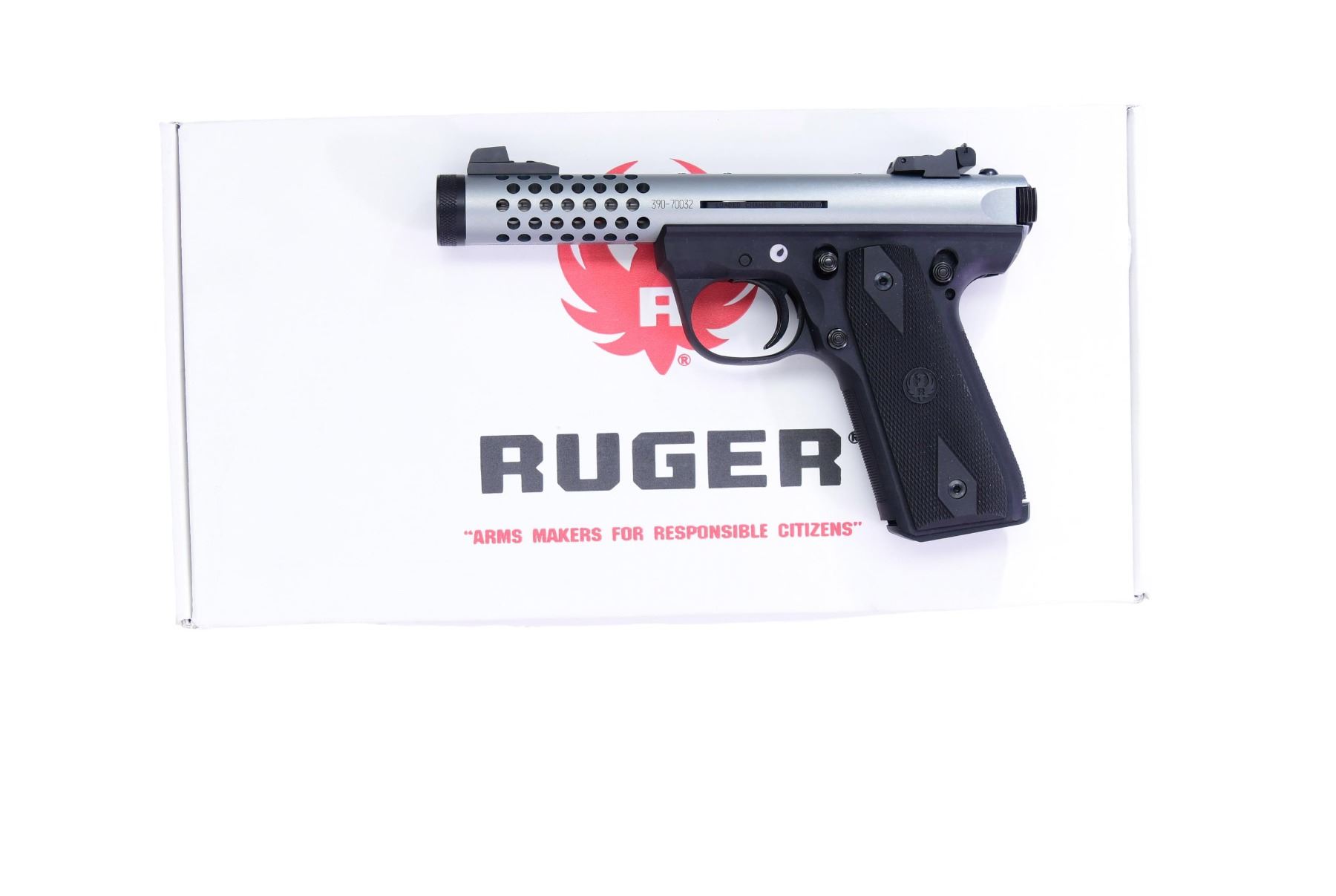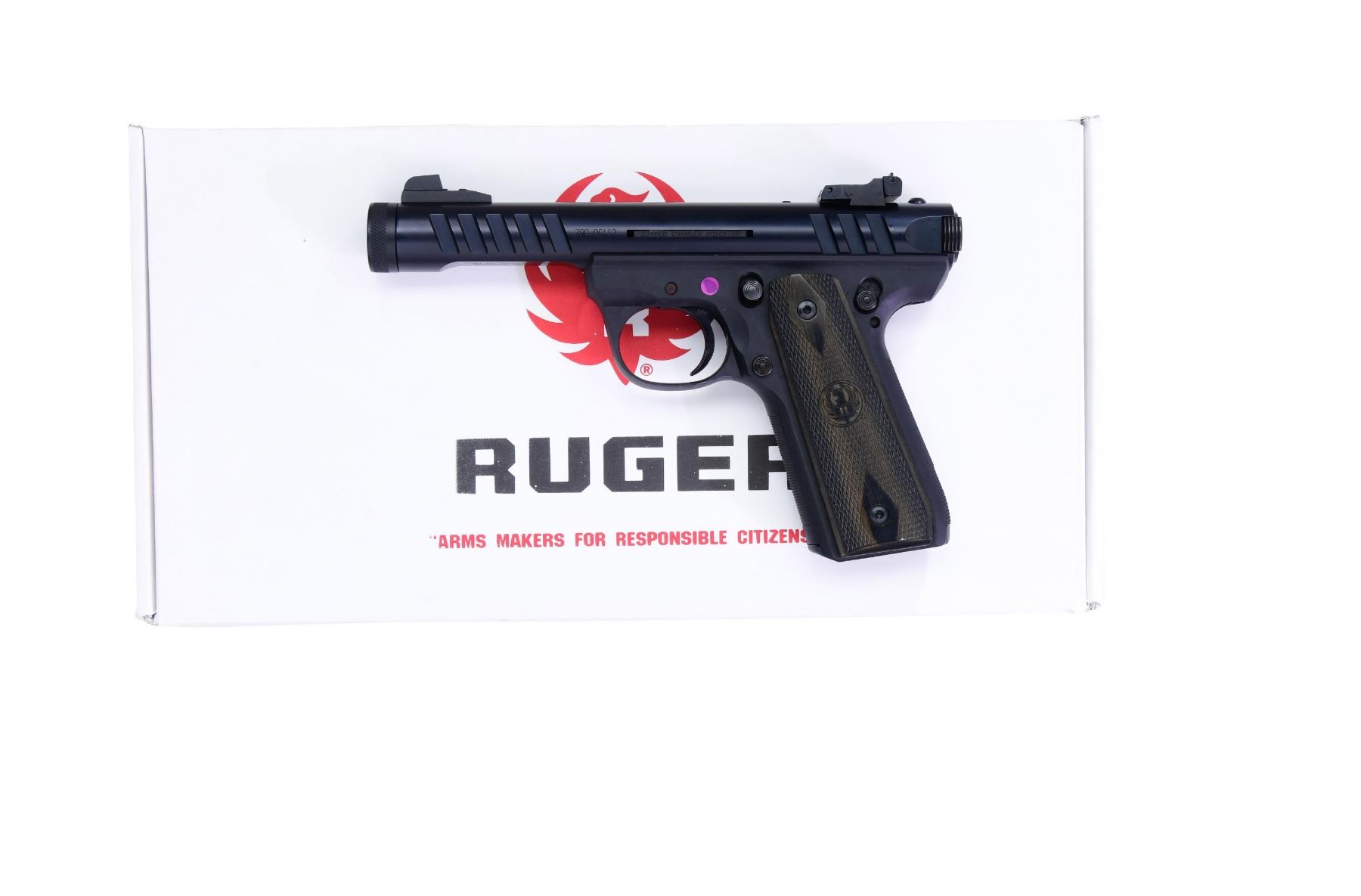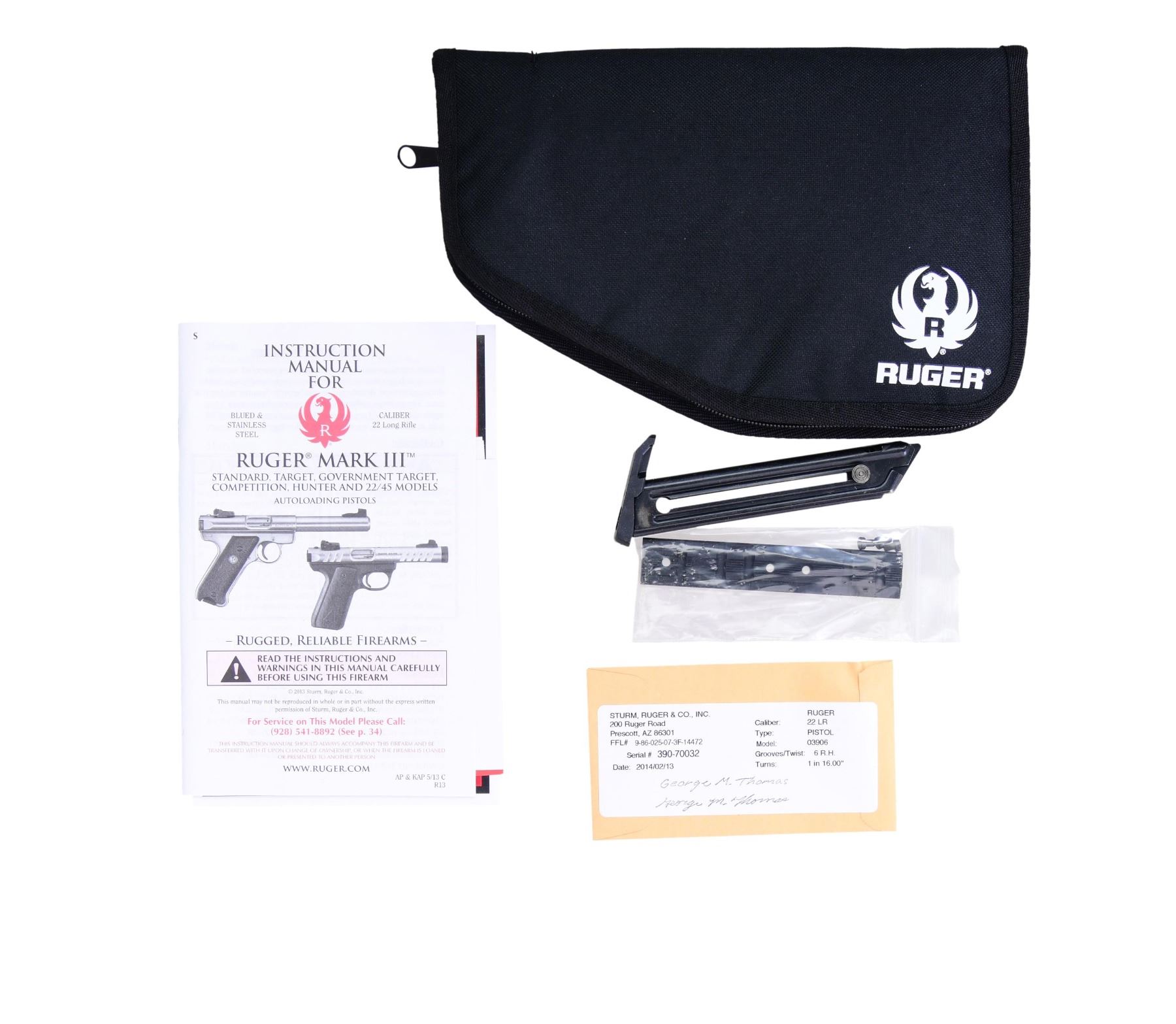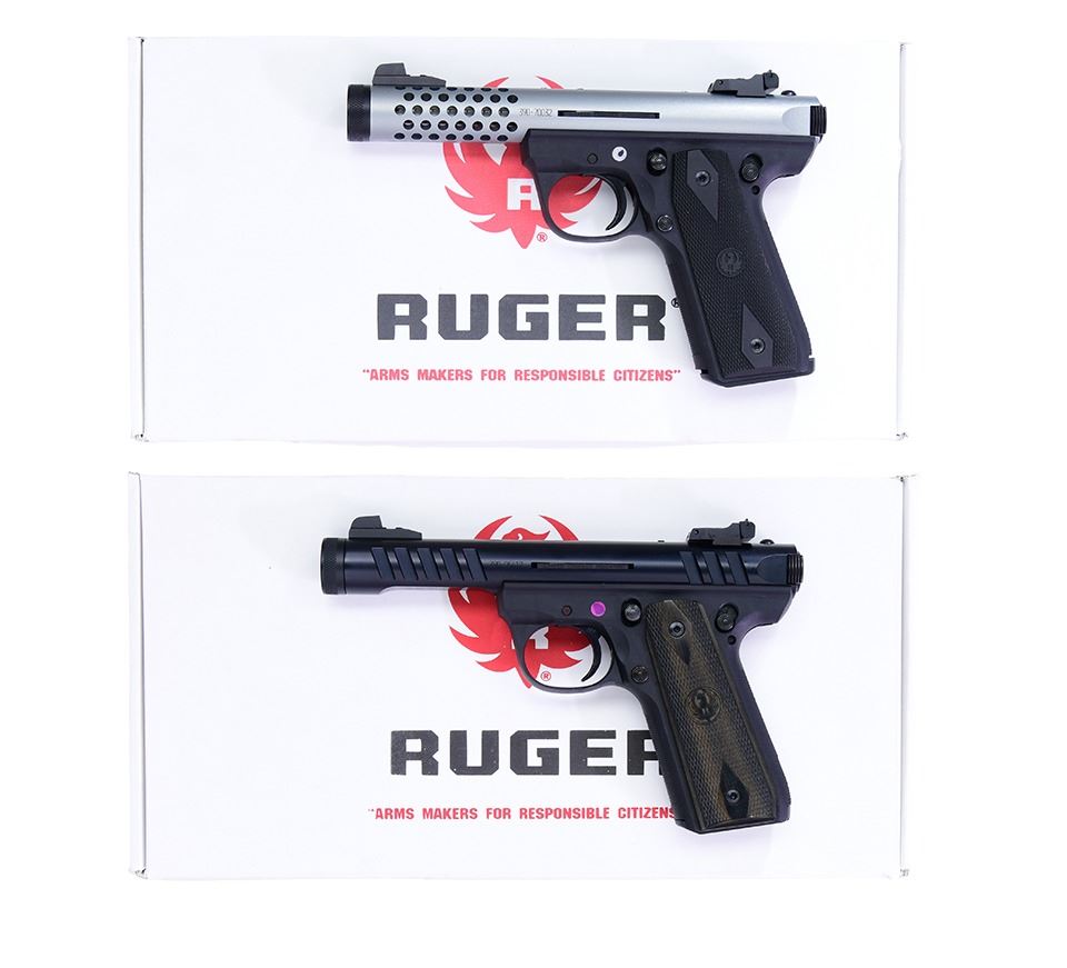MATCHING NUMBERED BOXES. ALL: cal. 22 LR. Barrels 4.5". UNATTACHED ACCESSORIES: Factory boxes & packaging for each pistol. CONDITION: near excellent overall condition. Bores are clean with sharp rifling. 1) MODEL 03906. Cal. 22 LR S# 390-70032 (2014). Catalog No. P45MK3ALRPVU. This model features a stainless steel finish with perforated barrel shroud and checkered grips. The frame includes a left-side safety and magazine release. MAGS: 2-10 Rds. (24-2901/MD). 2) MODEL 03902. Cal. 22 LR S# 390-05412 (2012). Catalog No. P45MKIIIALRPBL. This model features a blued finish with checkered grips and an adjustable rear sight. The frame includes a left-side safety and magazine release. MAGS: 2-10 Rds. (24-2902/MD) ALL MODERN. $600-900.