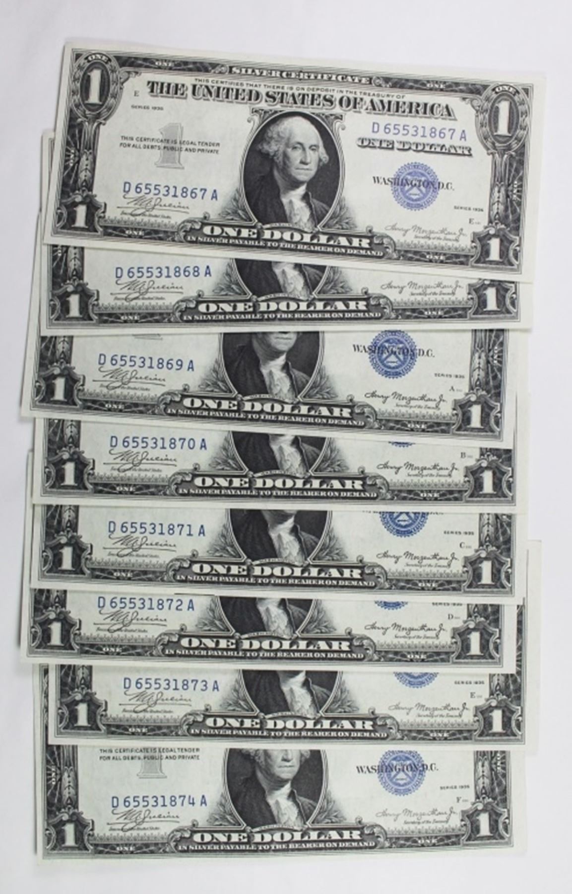 NO MOTTO. CONSECUTIVE SERIAL NUMBERS. (1) RUN OF 14 AND (1) RUN OF 8. TOTAL OF 22 NOTES. ALL SUPER GEM UNCS! LISTS AT $65.00 EACH! ESTIMATE: $1450-$1650