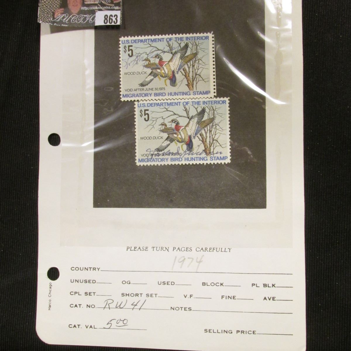 (2) RW41 1974 U.S. Department of Agriculture Migratory Bird Stamps, Fine, signed.
