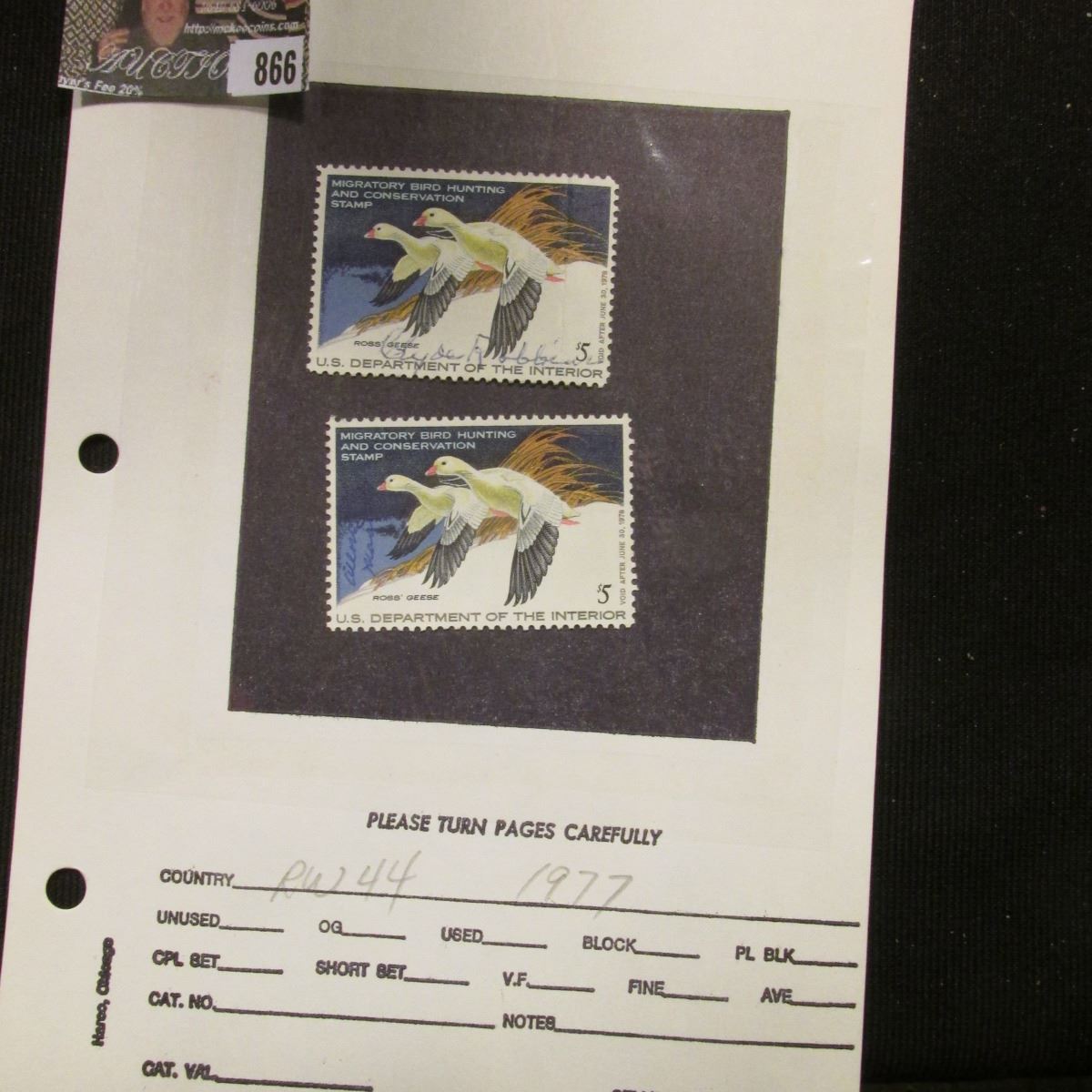 (2) RW44 1977 U.S. Department of Agriculture Migratory Bird Stamps, Fine, signed.