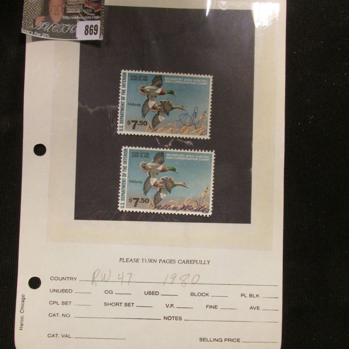 (2) RW47 1980 U.S. Department of Agriculture Migratory Bird Stamps, Fine, signed.