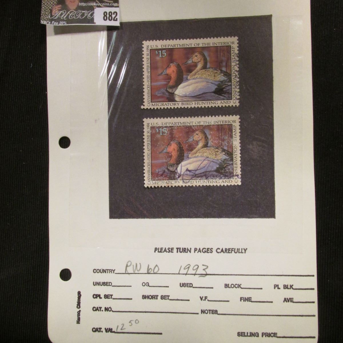 (2) RW60 1993 U.S. Department of Agriculture Migratory Bird Stamps, Fine, signed.