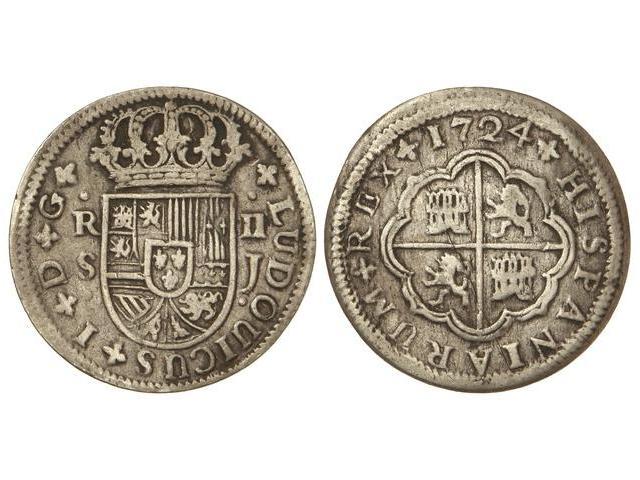 2 Reales. - 1724. - SEVILLA. - J. - (Rayitas. Ligeramente alabeada). Cal-42. MBC. - -