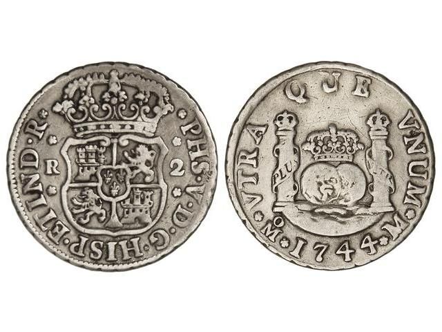 2 Reales. 1744/3. MÉXICO. M. Columnario. Cal-1295. MBC/MBC-.