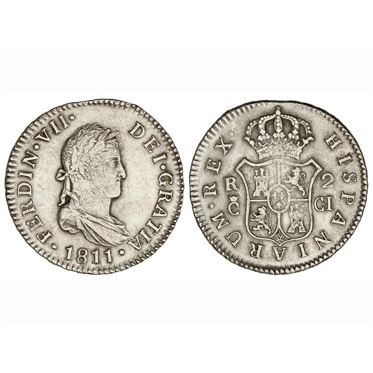 2 Reales. - 1811. - CÁDIZ. - C.I. - (Acuñación algo floja en reverso). Cal-837. MBC. - -
