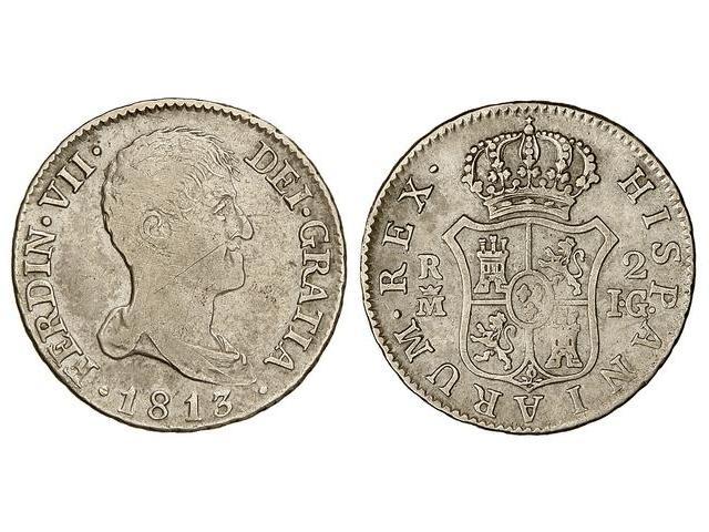 2 Reales. 1813. MADRID. I.G. (Rayas en anverso). ESCASA. Cal-913. MBC-.