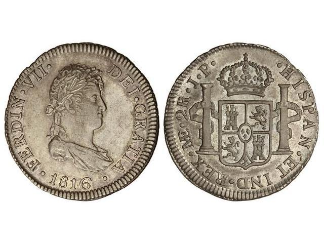 2 Reales. 1816. LIMA. J.P. Parte de brillo original. Cal-904. EBC/EBC+.