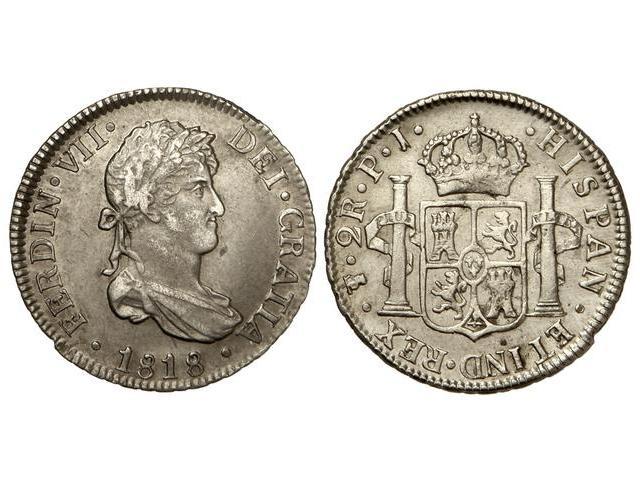 2 Reales. 1818. POTOSÍ. P.J. (Leve defecto de acuñación en canto. Rayitas). Cal-992. MBC.