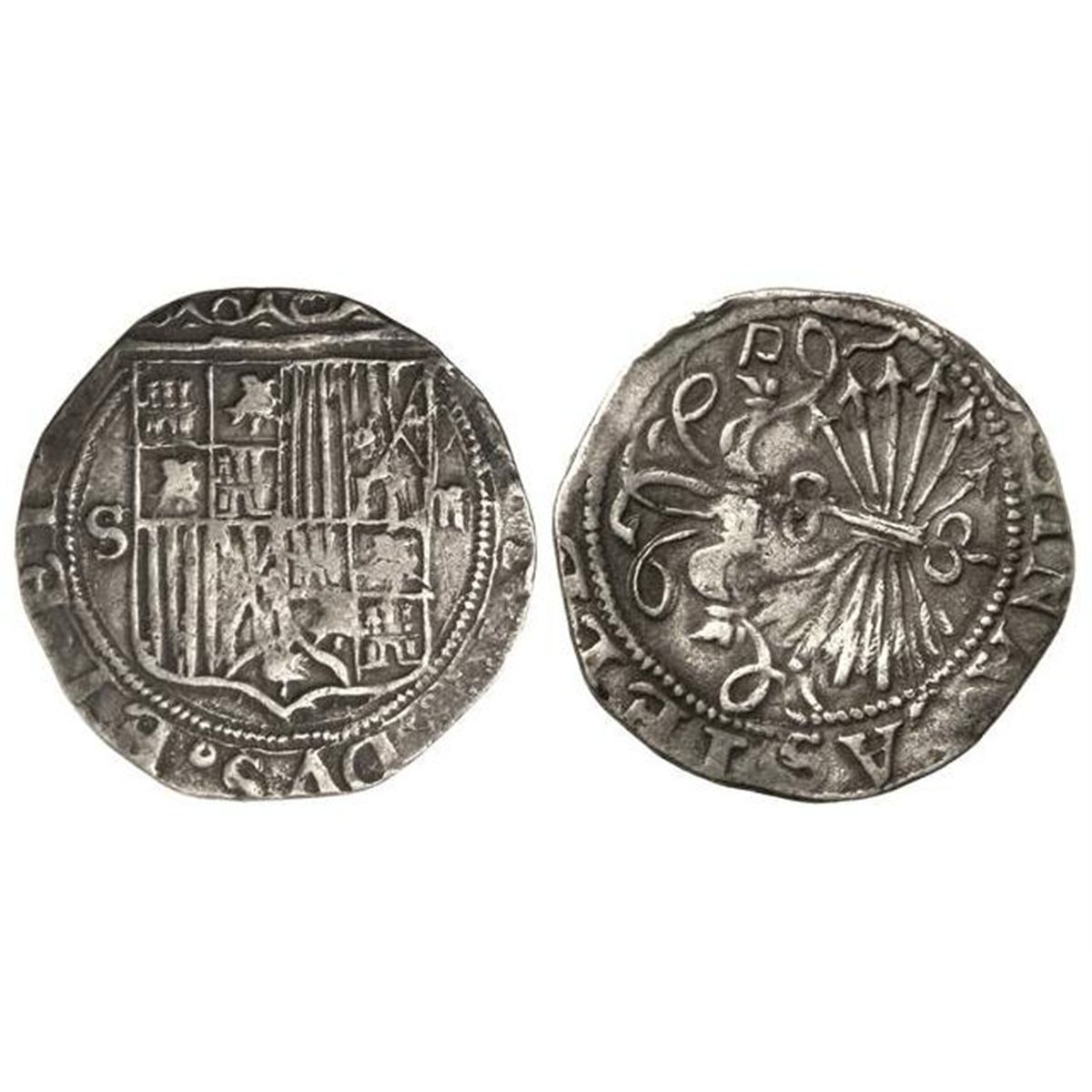 2 Reales. - SEVILLA. - Anv.: S-Escudo-II. Rev.: ¶en campo. 6 flechas. 6,73 grs. Leyendas algo recortadas. Ensayador: ¶. Cal-265. MBC. - -