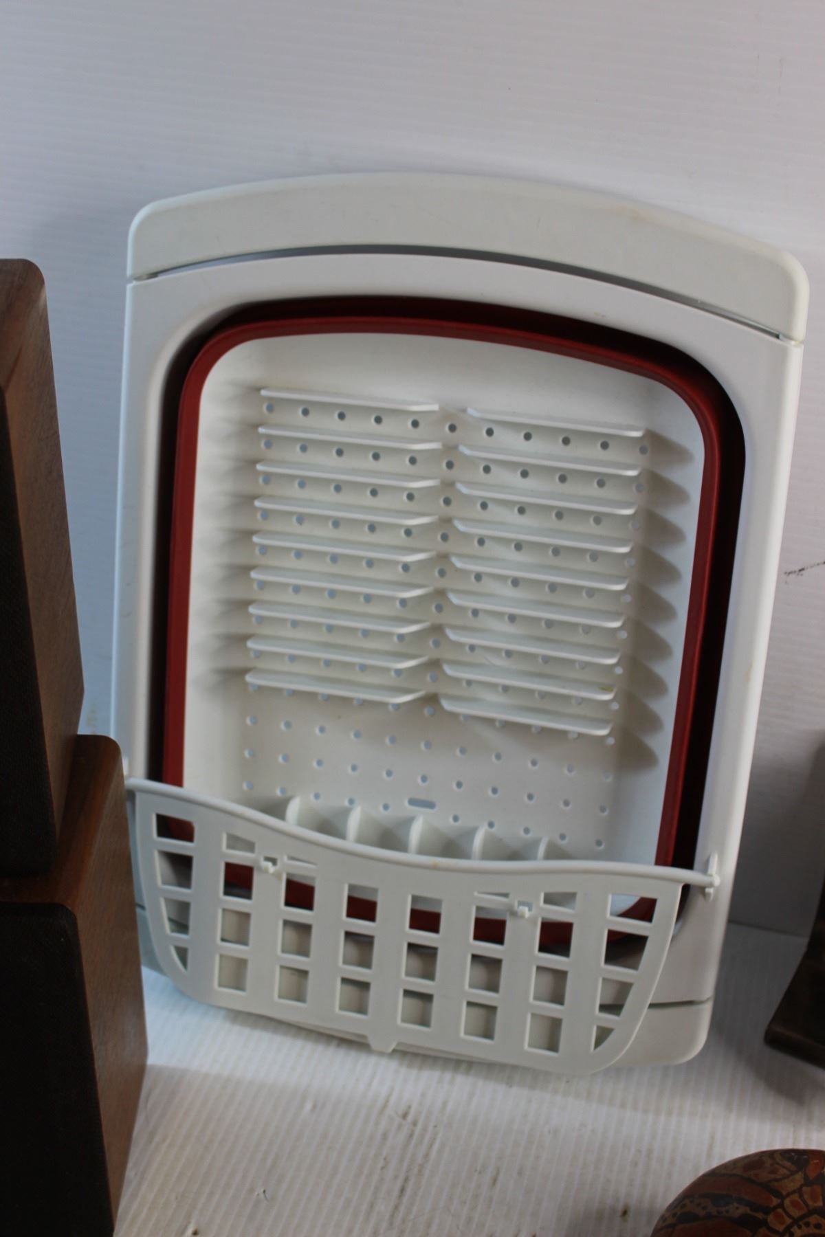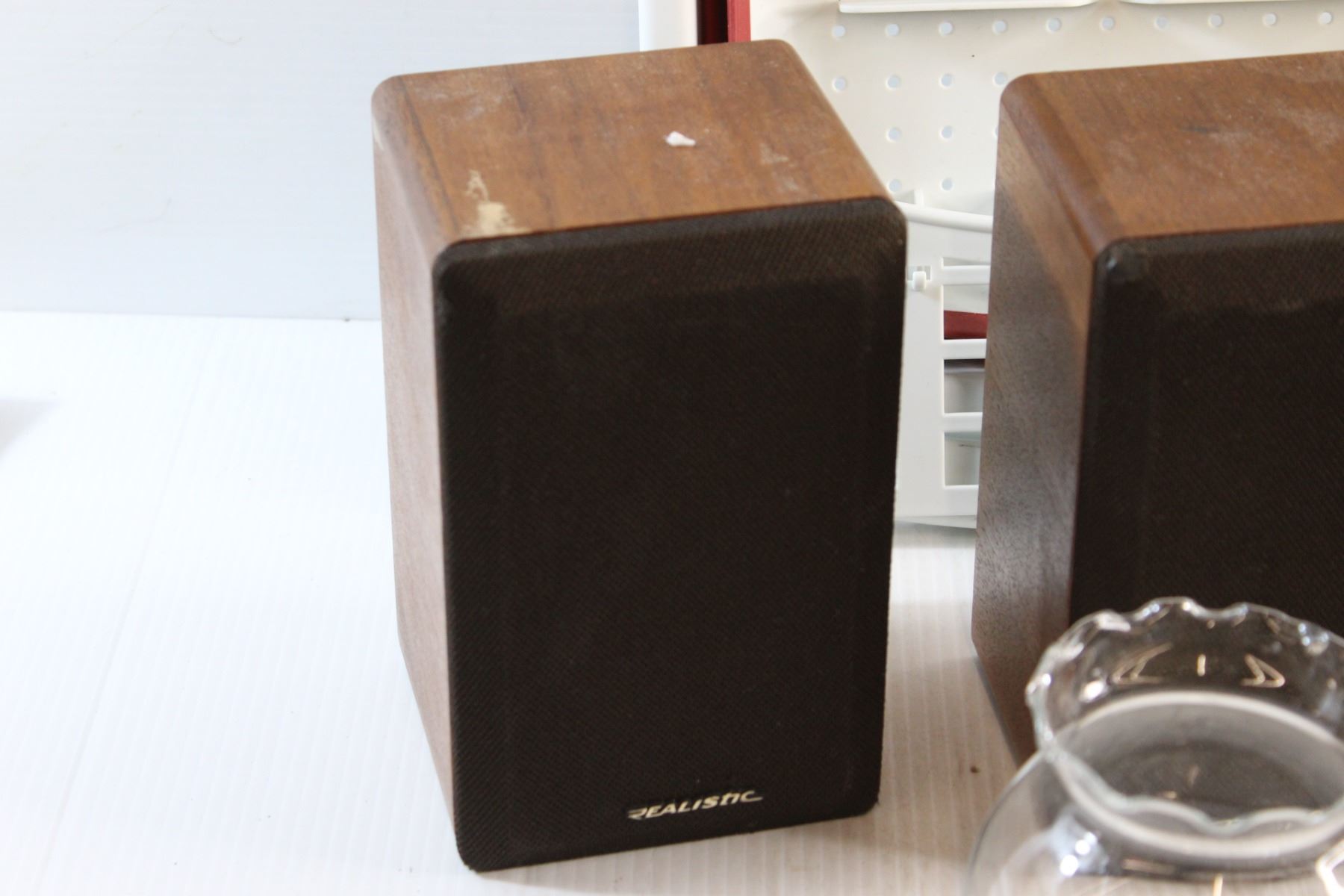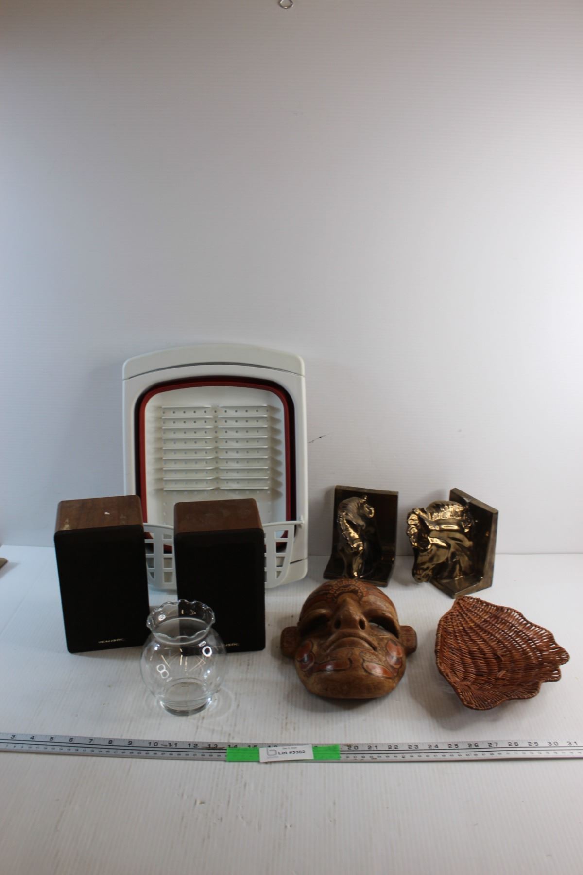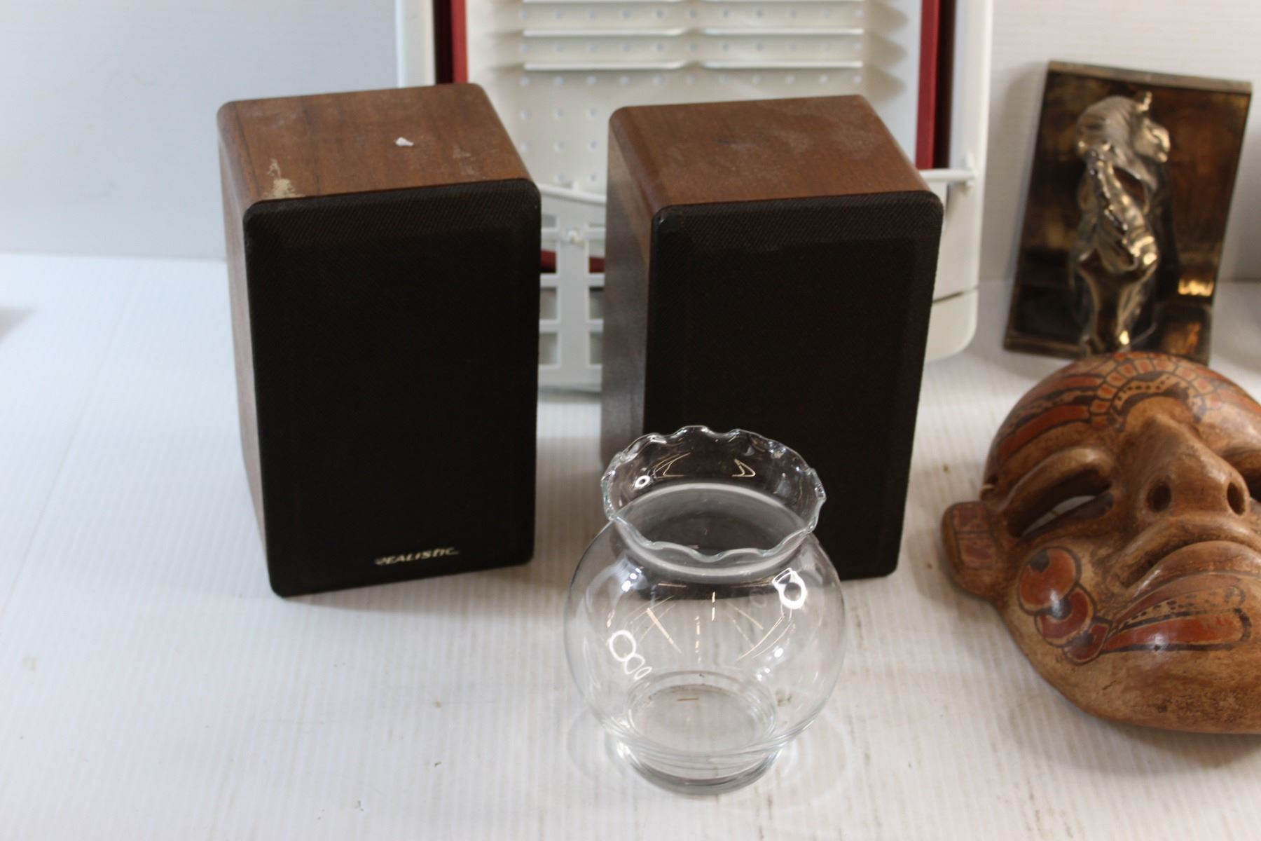 (2) Realistic Speakers - As Is, Kitchen Sink Helper, Glass Jar, Tribal Mask and Misc.
