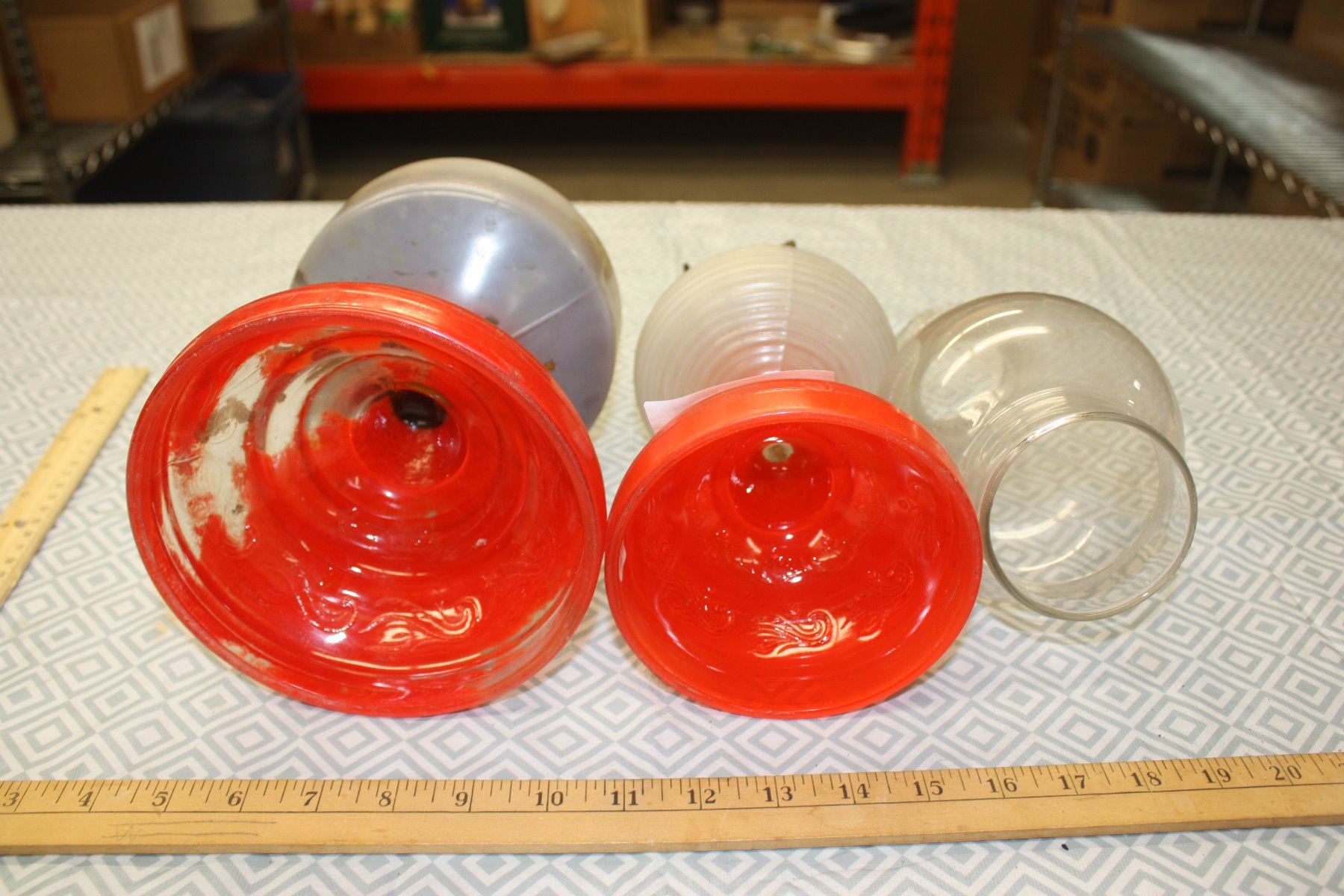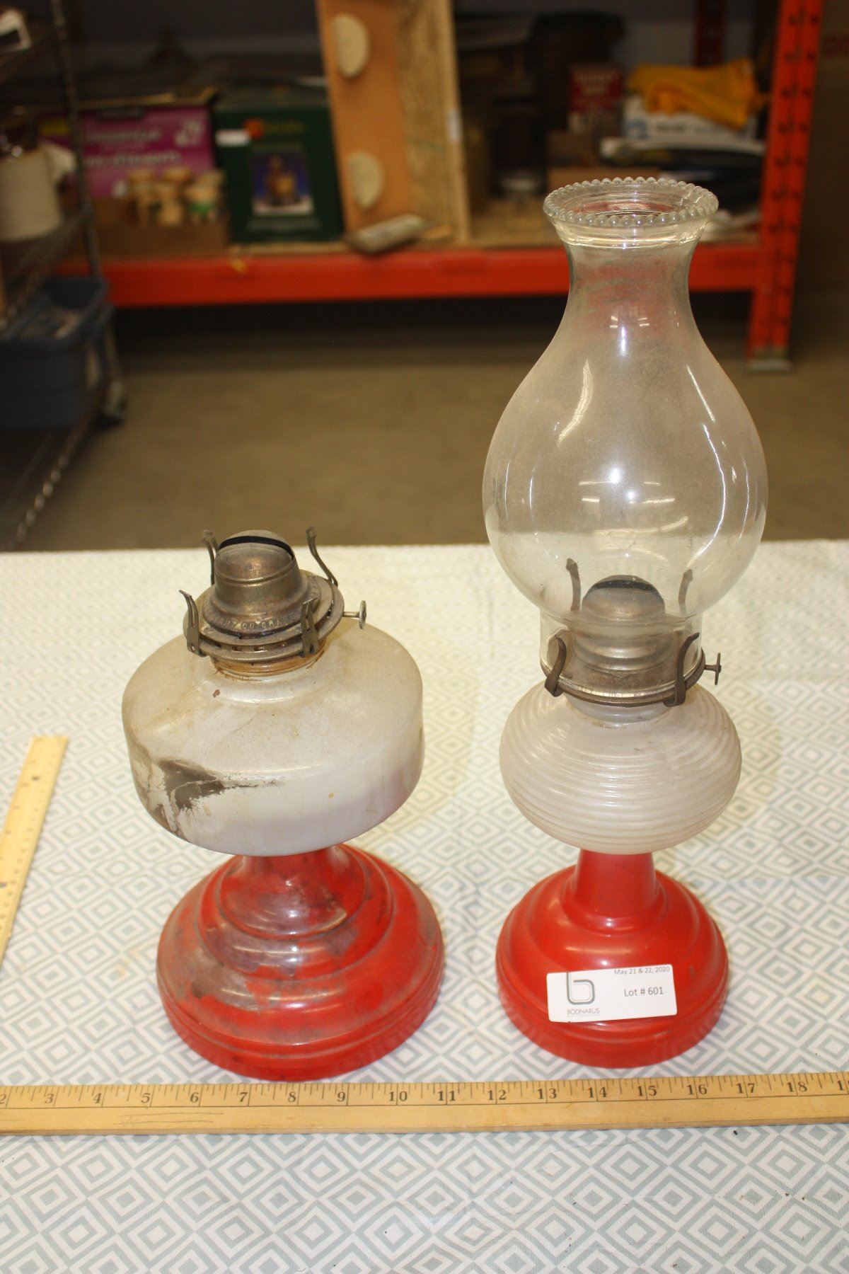 2 Red Base Lamps, Beehive with Chimney