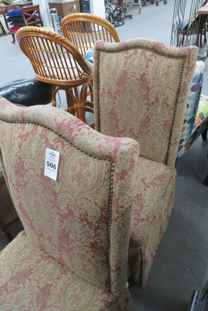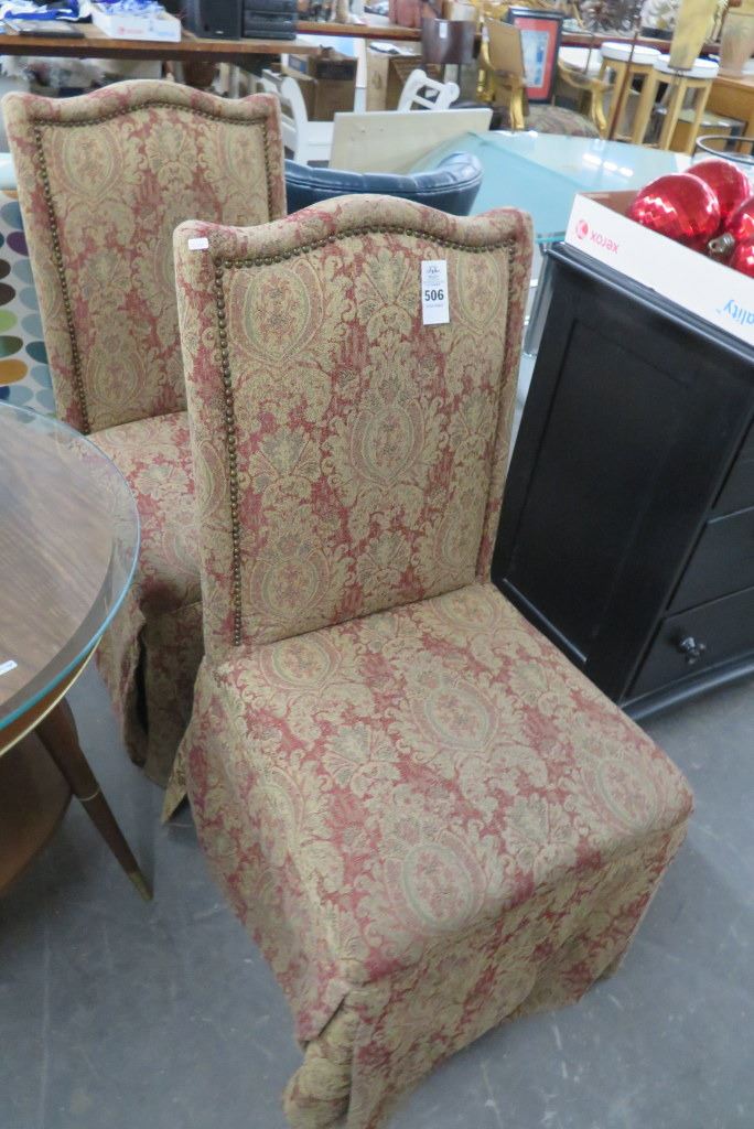 2 Red/Tan Fabric Skirted Side Chairs (Pair)