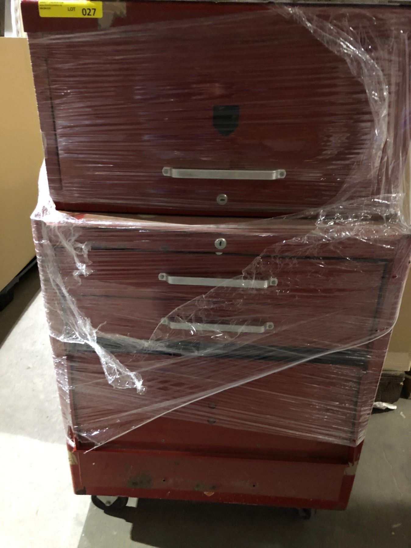 2 Red Tool Boxes with contents - 26 x 12 x 14in x 27 x 18 x 30 inches - used with miscellaneous contents included