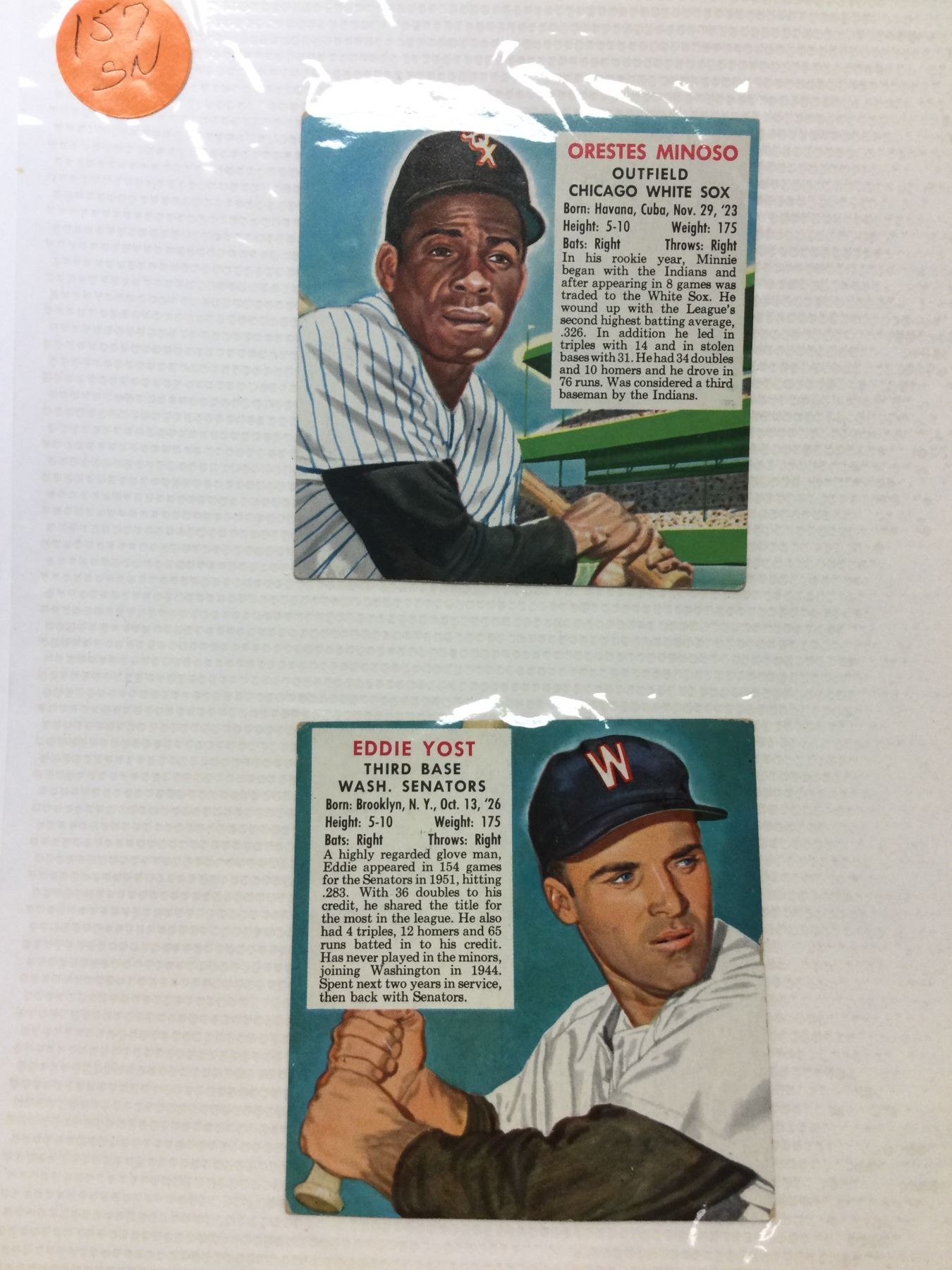 You are bidding on a lot of 2 Cards from the 1950's, Redman Chewing Tobacco Baseball Cards including Orestes Minoso & Eddie Yost