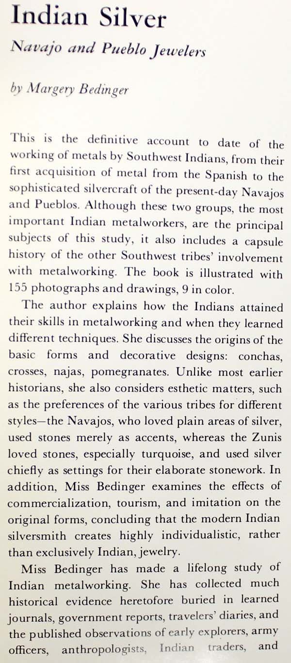 2 Reference Books on Native American Silver, includes 1. Hopi Silver by Margaret Nickelson Wright. Paperback, Northland Publishing, 1992 2. Indian Silver: Navajo and Pueblo Jewelers by Margery Bedinger. Hardcover, University of NM Press, 1974, comes in original book jacket