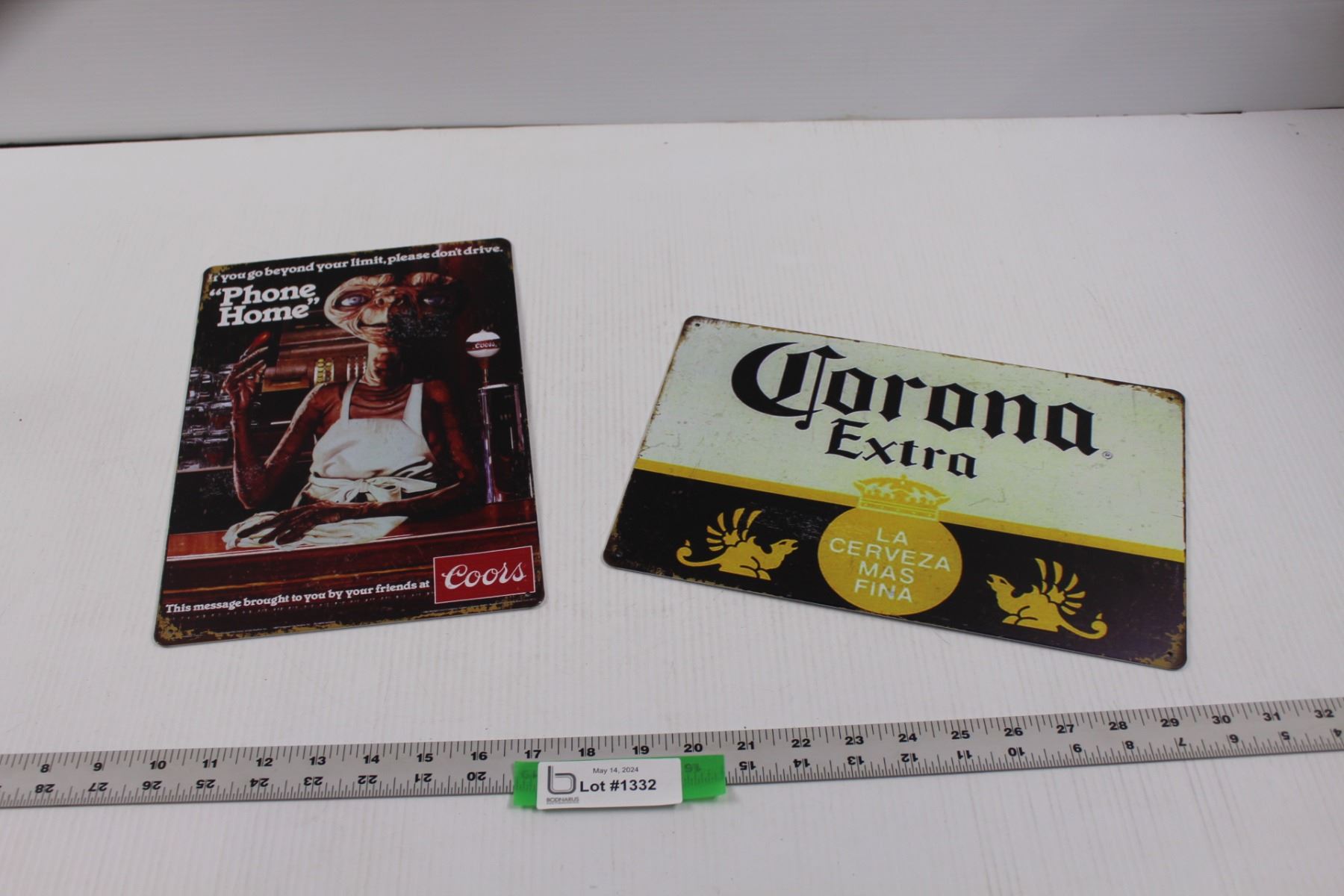 (2) Reproduction Tin Signs (11.75"x7.75") - Coors E.T & Corona Extra