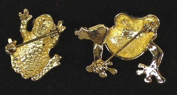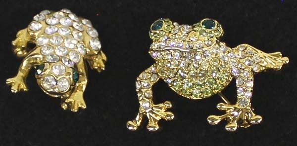 2 Rhinestone Frog Brooches, largest measures 1'' x 1''