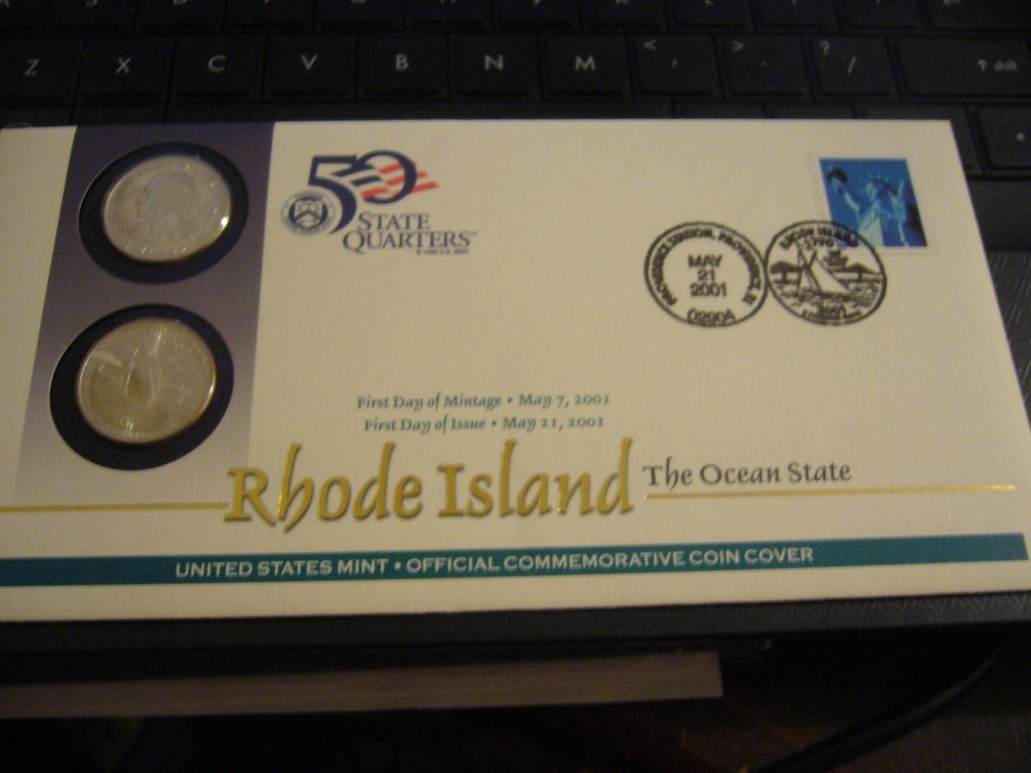 2 Rhode Island State Quarters in the United States Mint Official Commemerative Cover