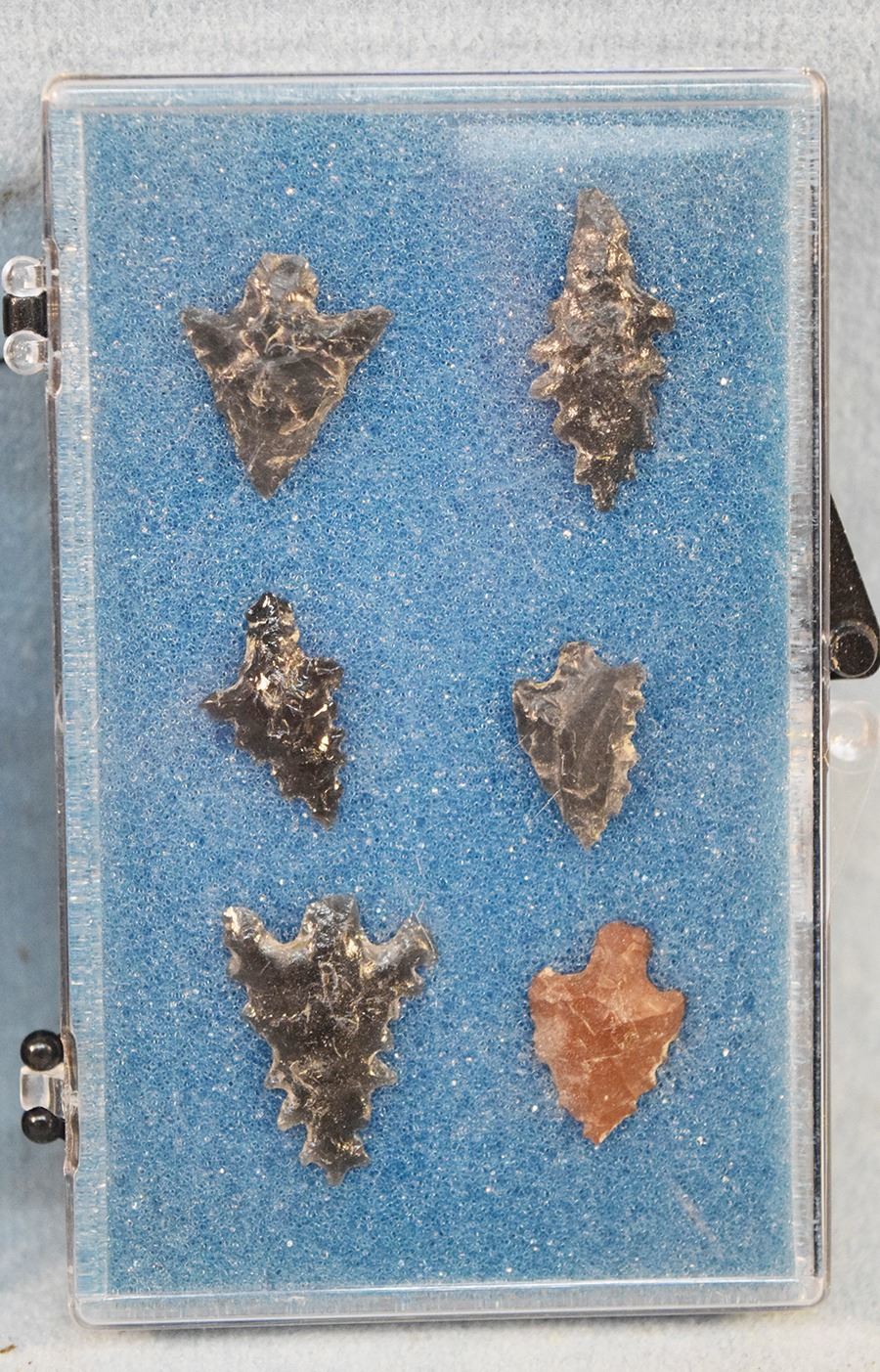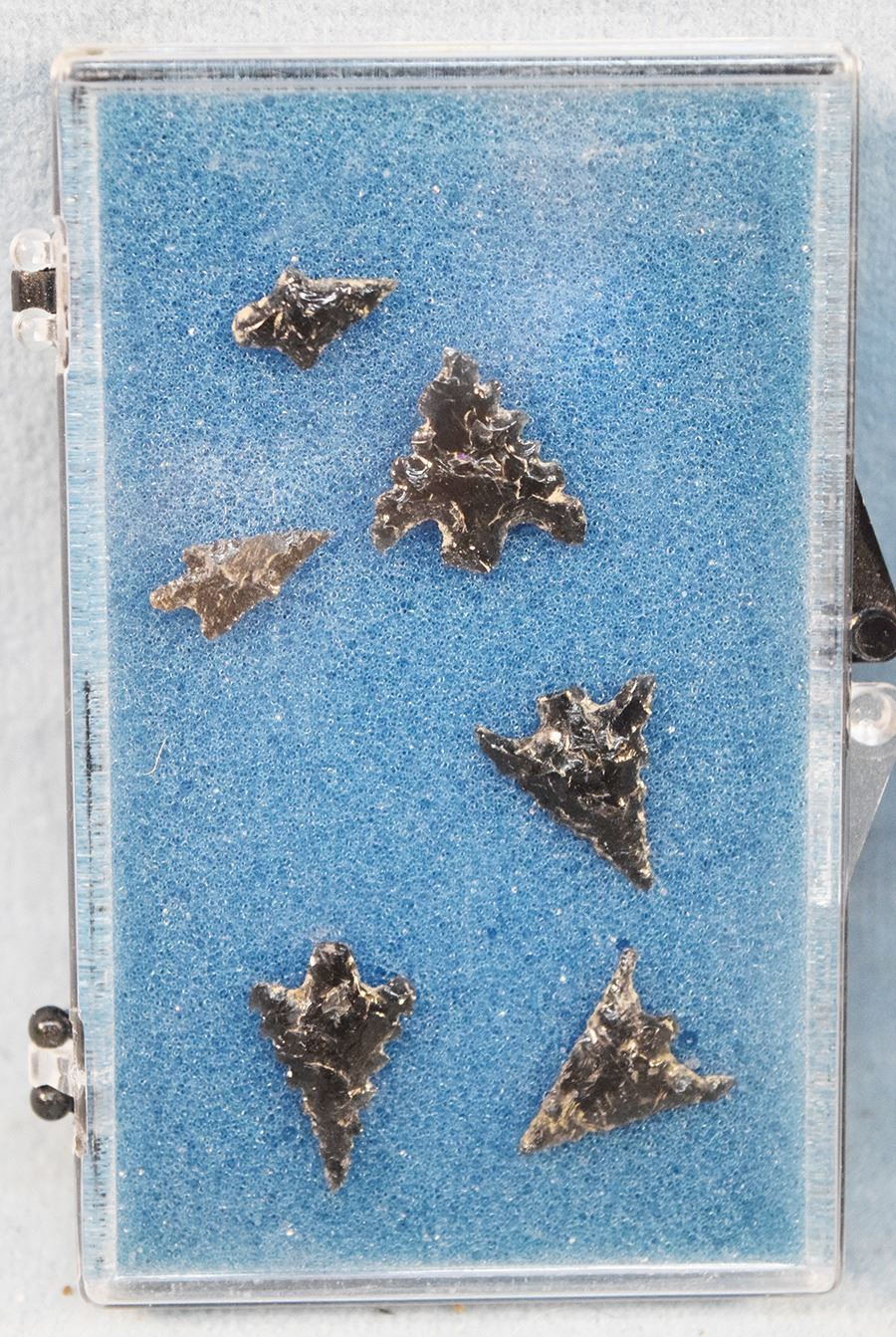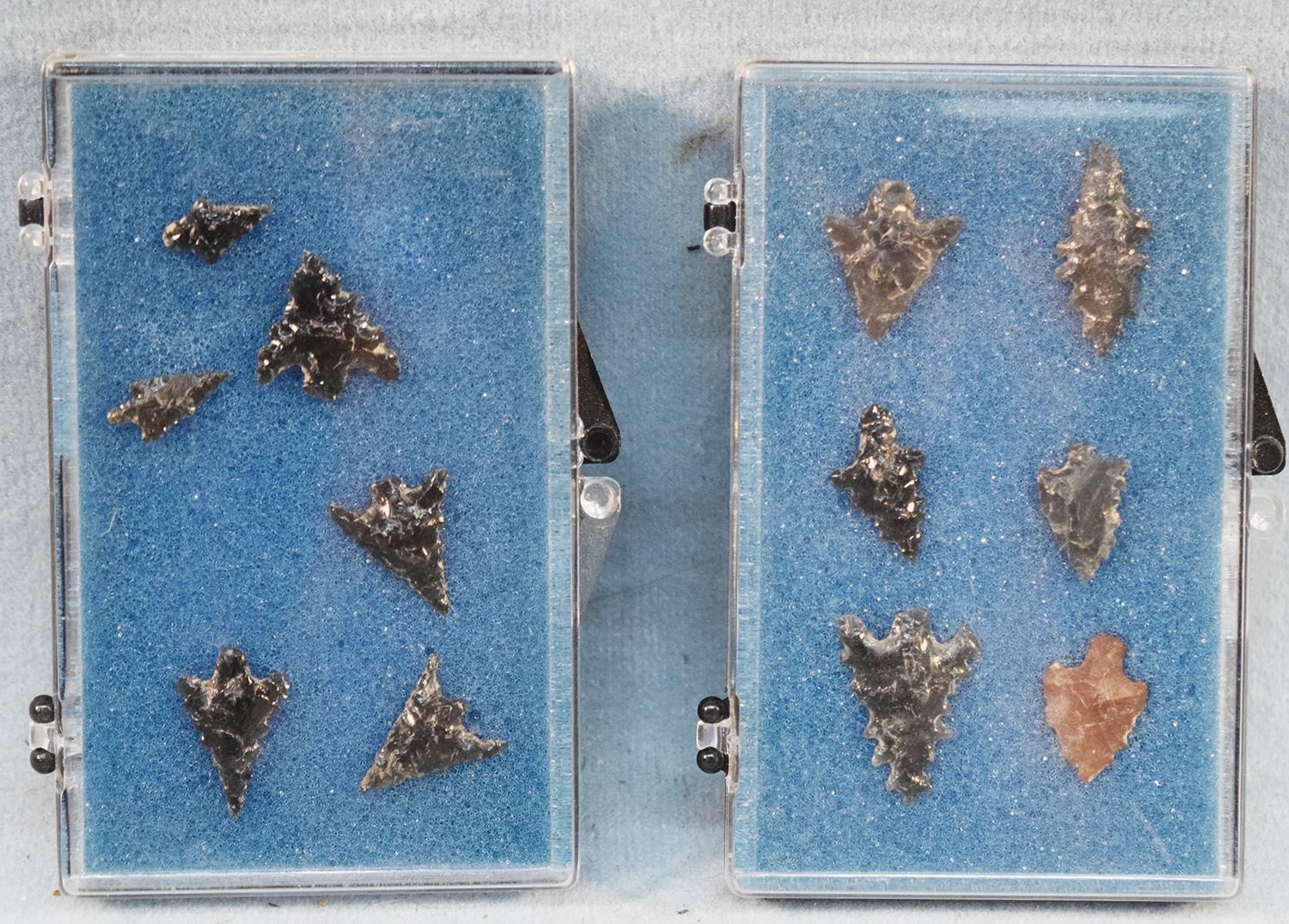 (2) Riker Cases: 6 obsidian points & 7 obsidian points