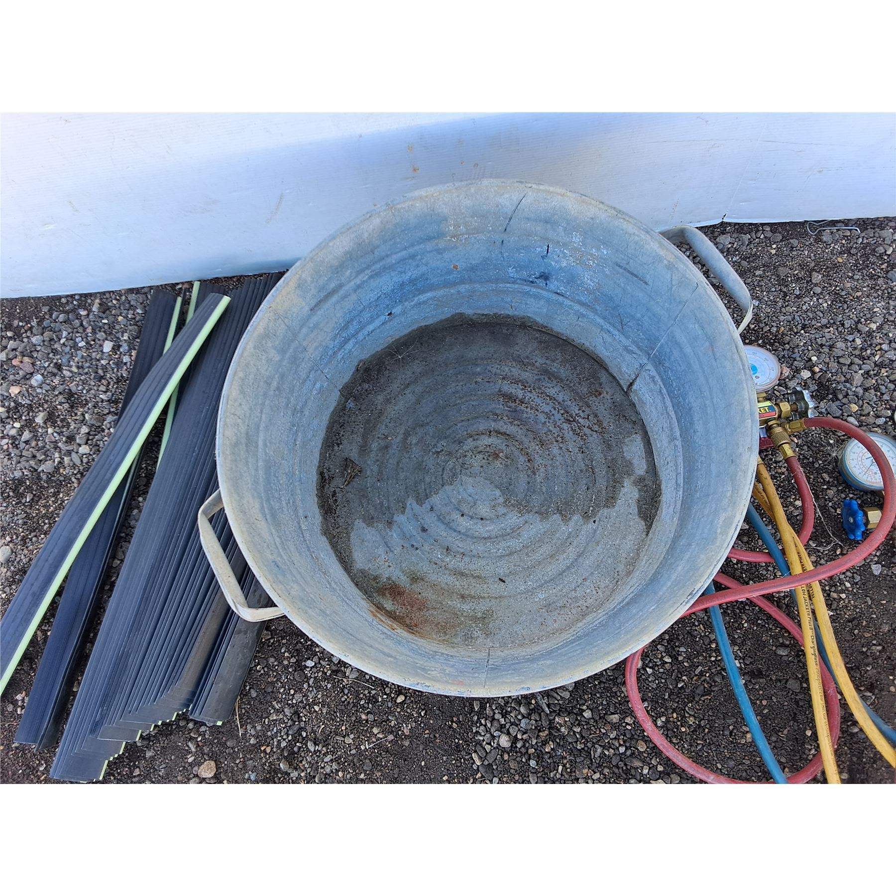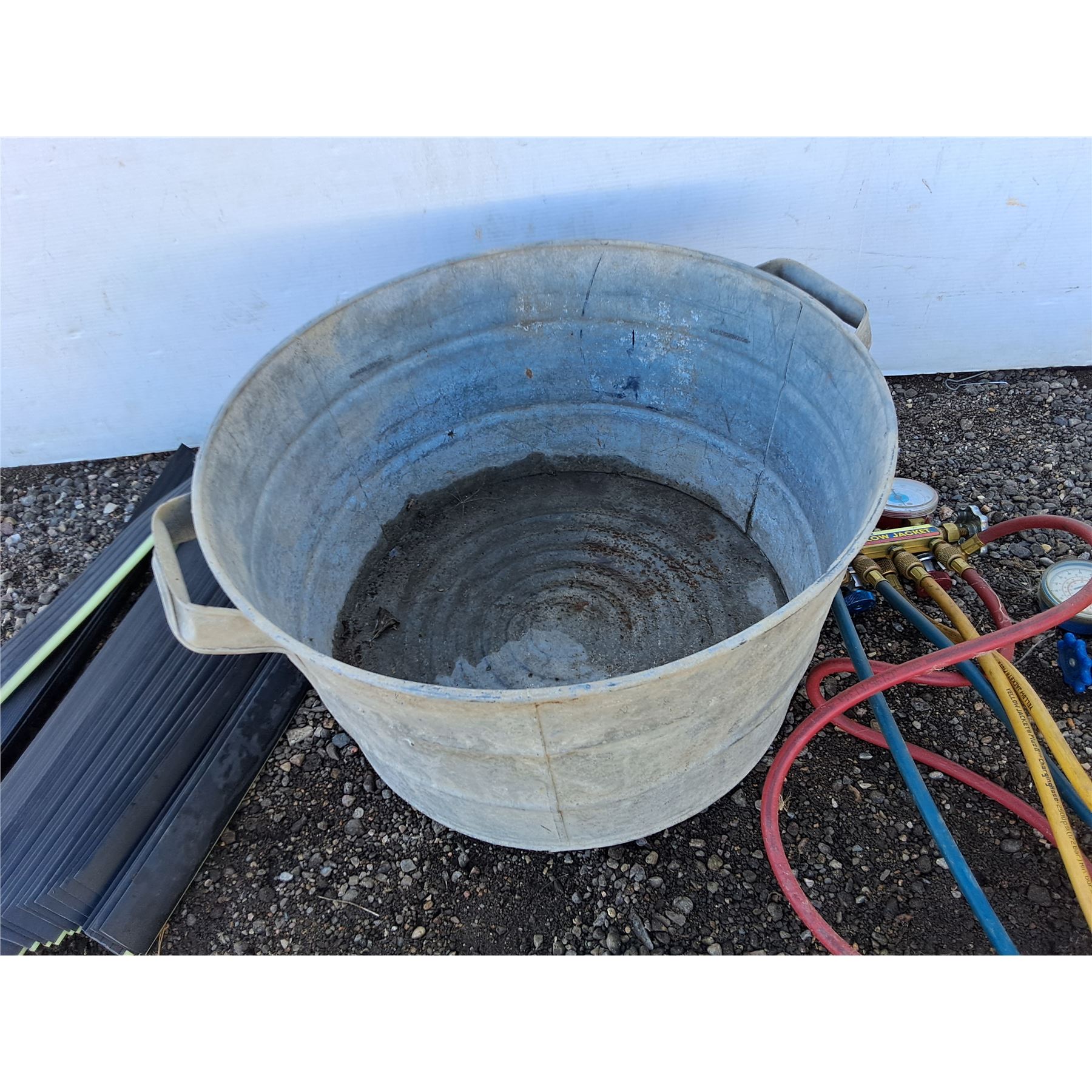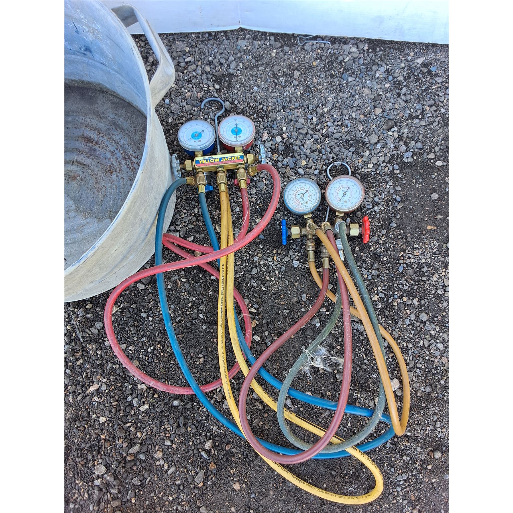**(2) Ritchie Yellow Jacket Test & Charging Manifolds, Weather Strips, Galvanized Bucket 20" x 11",