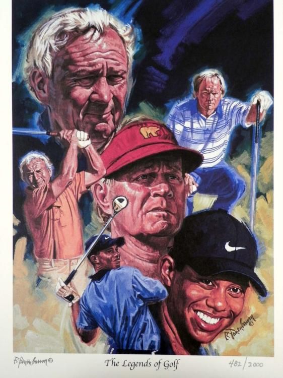 Here are two different sizes of "The Legends of Golf". In every sport, stars emerge that take the game to a new level. It is this process of exceeding expectations and setting standards against which future greats are measured that elevates a start to the status of legend. Arnold Palmer, Jack Nicklaus, and Tiger Woods have each become the stuff of which legends are made. Both prints would make a great wall display once framed. * Artist: Robert Tanenbaum * Title: "The Legends of Golf" * Medium: Lithograph printEdition: 665 & 482/2000Overall Size: 10" x 13" & 16" x 20"Signature: Signed in print by artist * Certificate of Authenticity: Included * Condition: Excellent *
