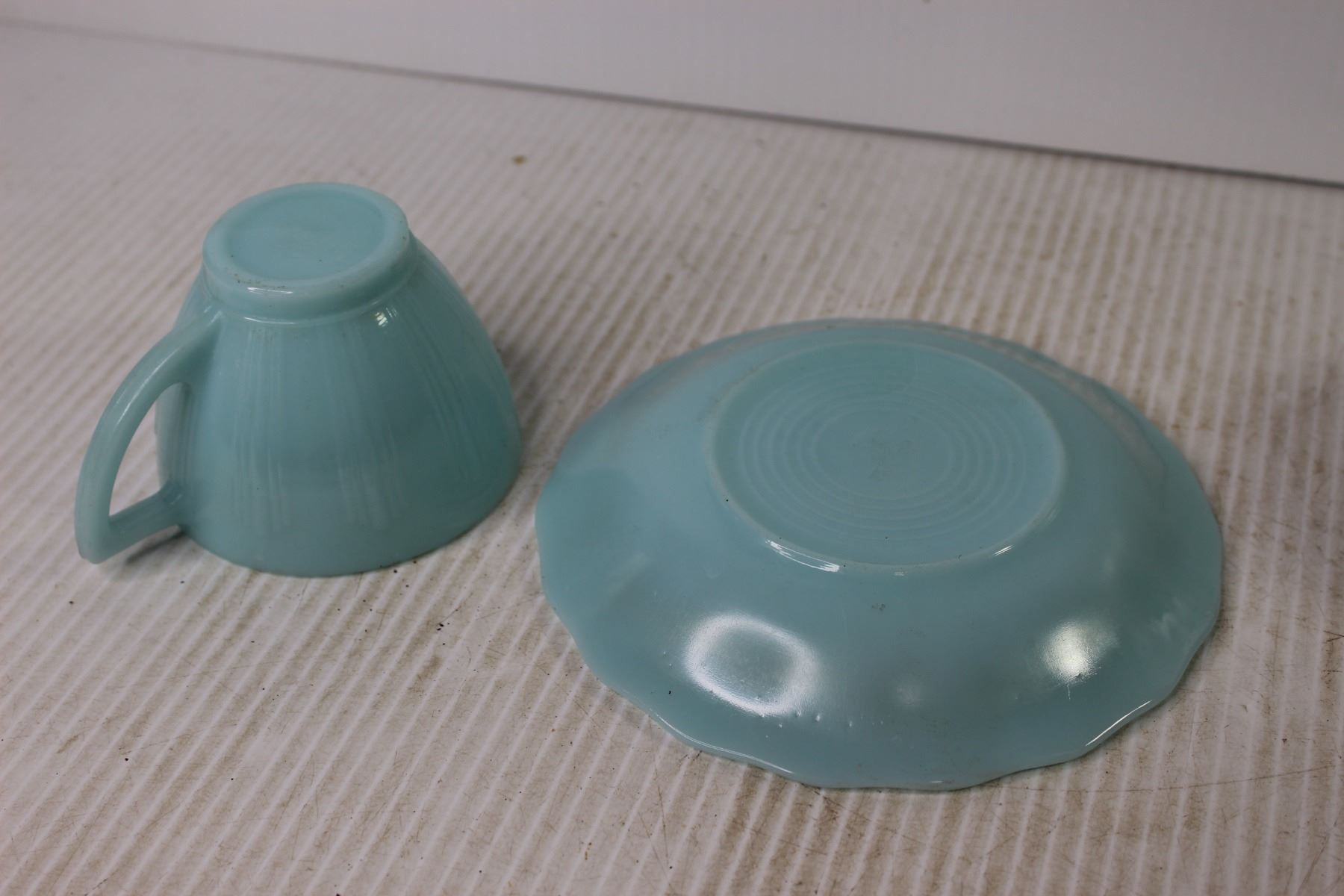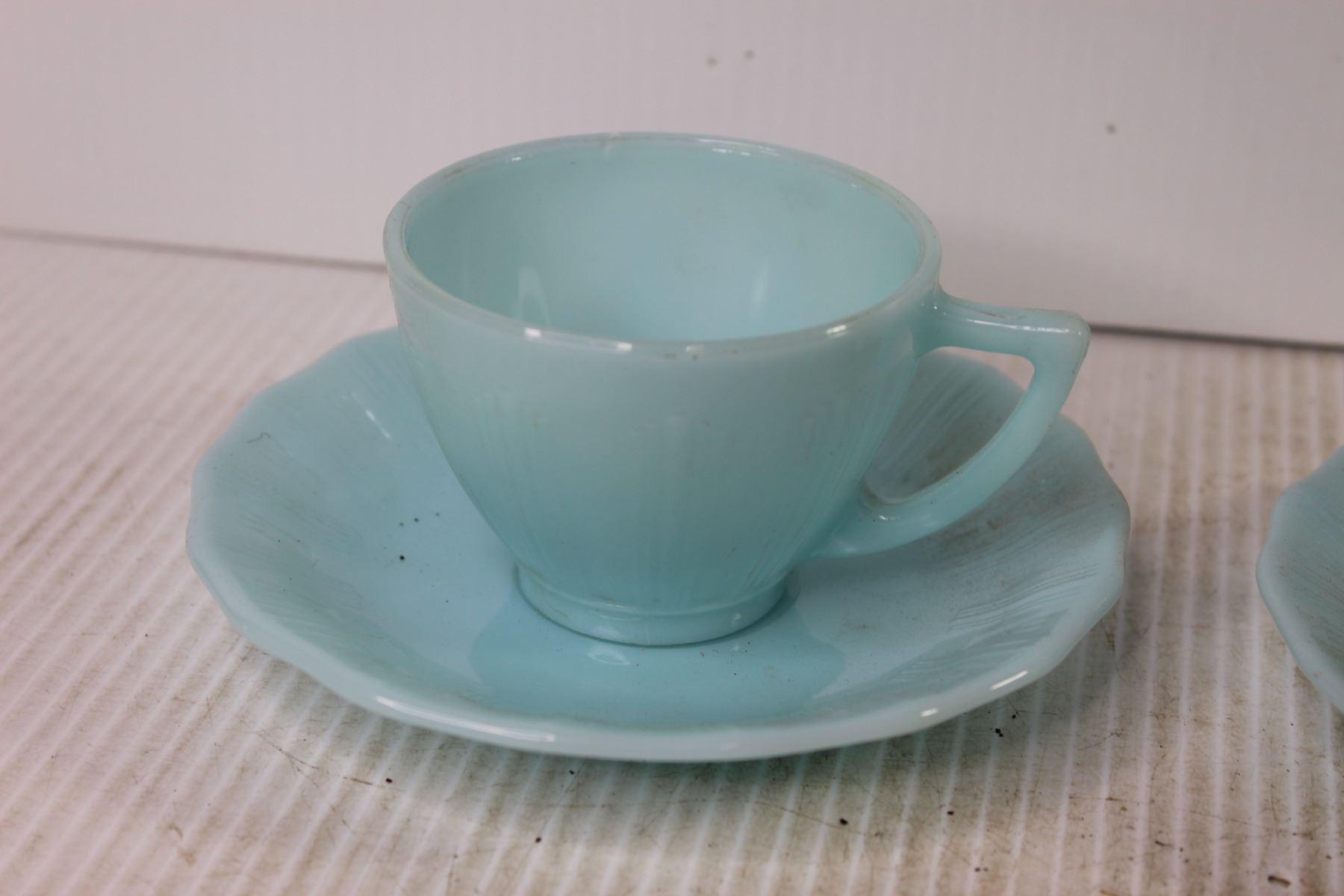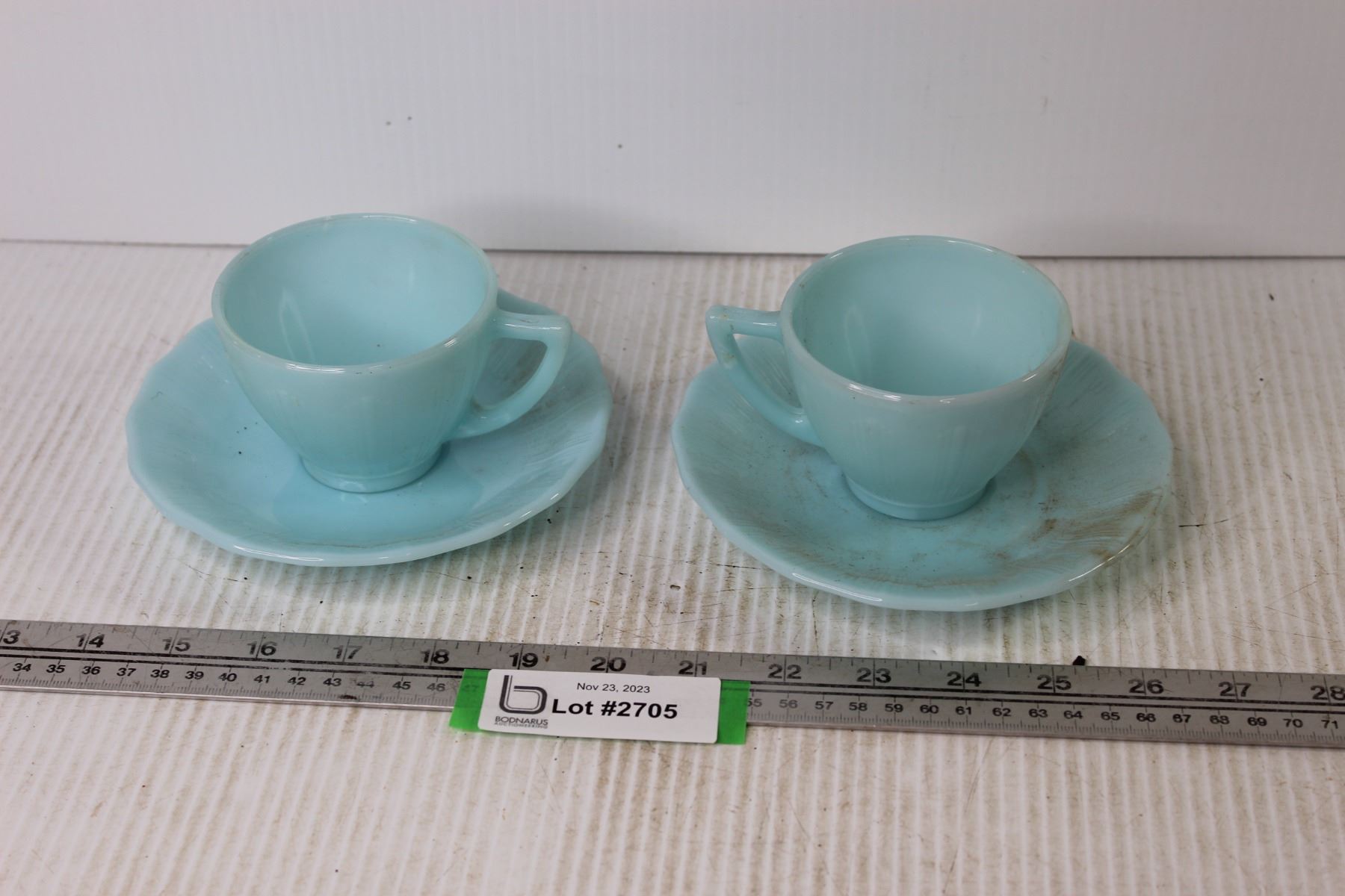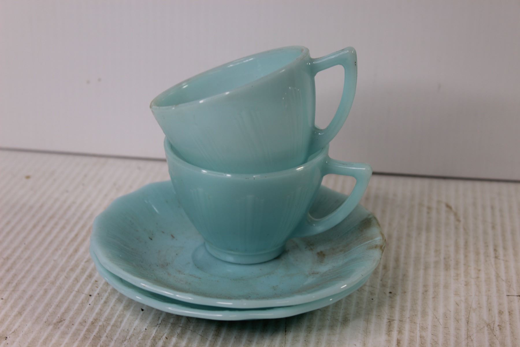 (2) Robins Egg Blue Pyrex Cups & Saucers