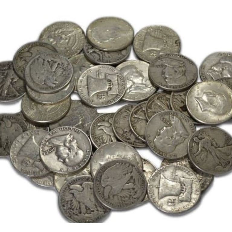 2 Rolls - Mixed Type and Date Half Dollars 90%