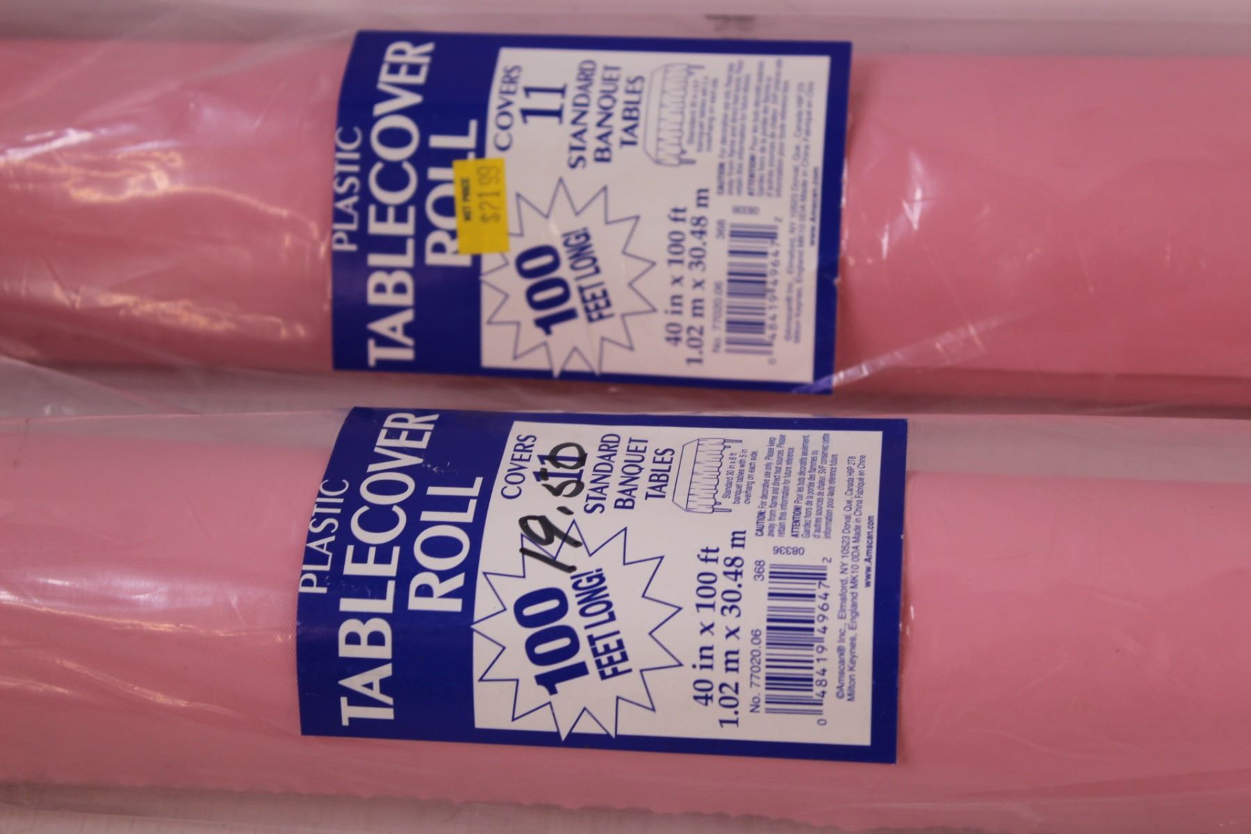 (2) Rolls of Pink Plastic Tablecloths (100ft Each) - NIB