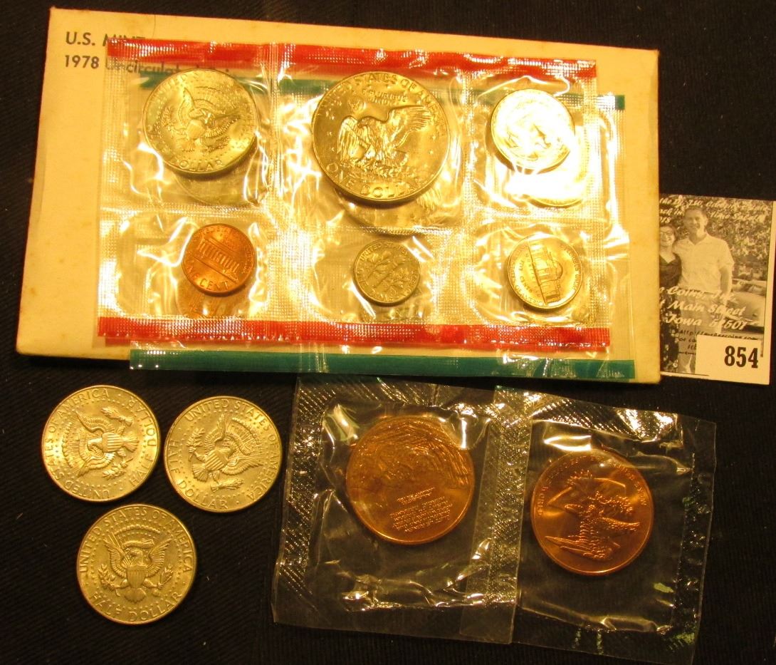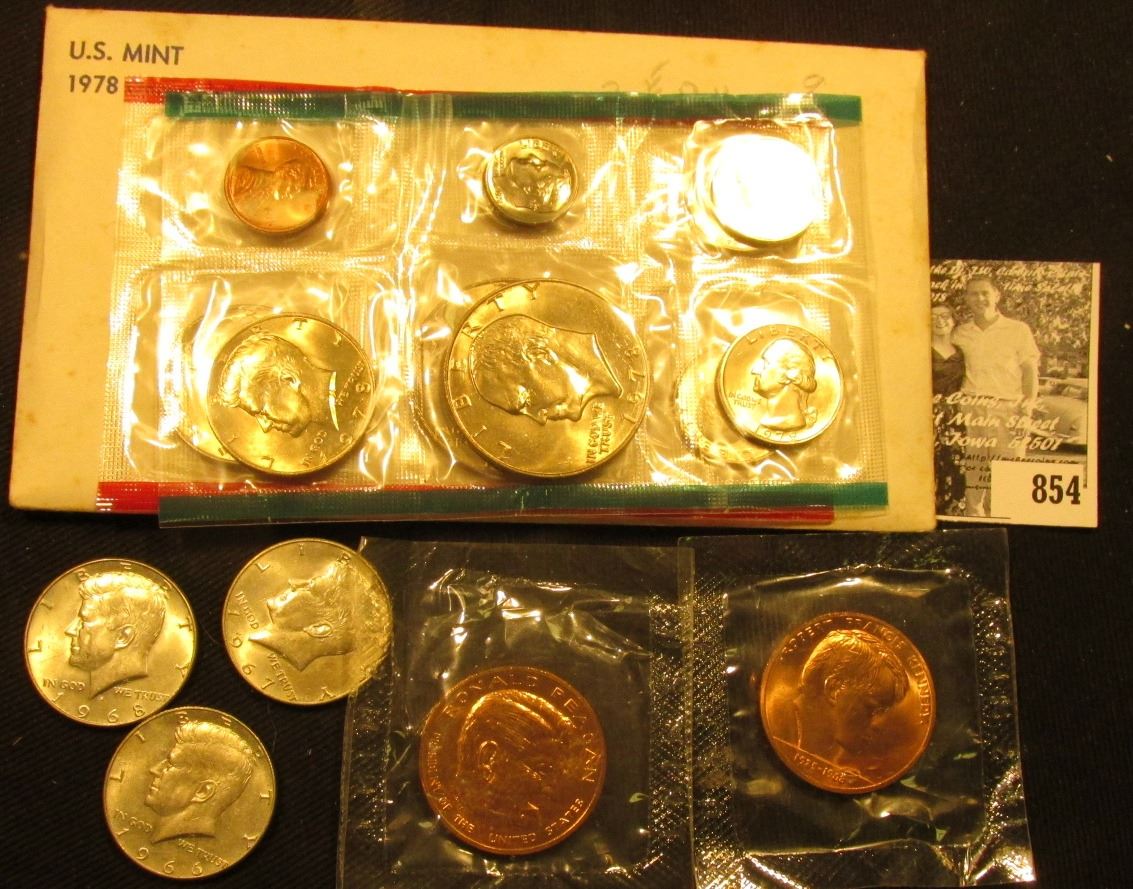 (2) Ronald Reagan U.S. Mint Medals in original cellophane; 1966P, 67P, & 68D 40% Silver Kennedy Half Dollars; & 1978 U.S. Mint Set, Original as issued.