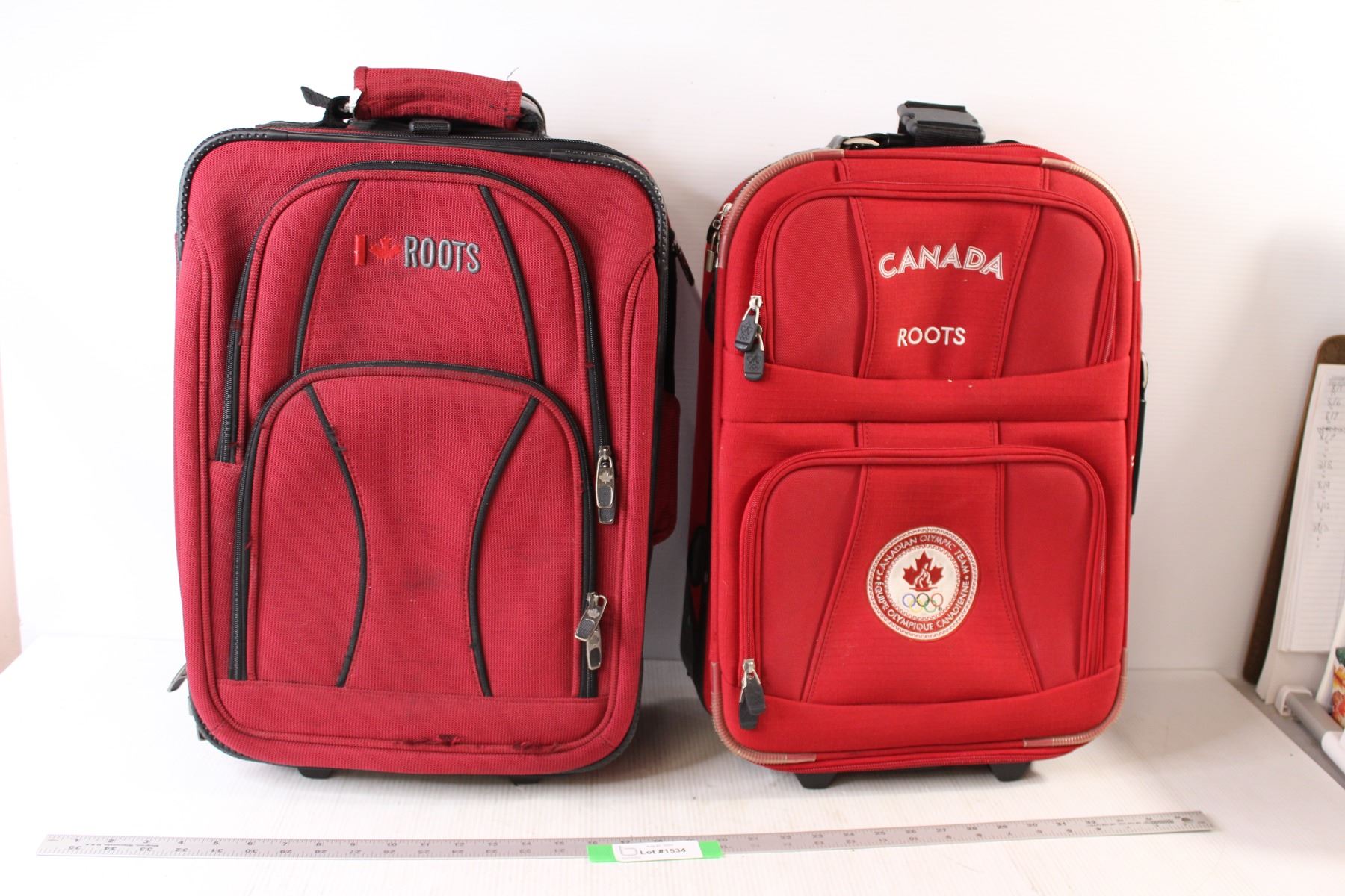 (2) Roots Red Suitcases - One with Olympic Symbol