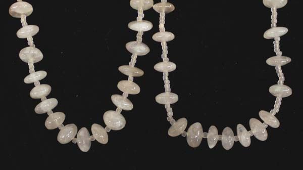 2 Rose Quart Necklaces Designed by Kills Thunder, longest measures 24''L end to end, largest bead measures 1''
