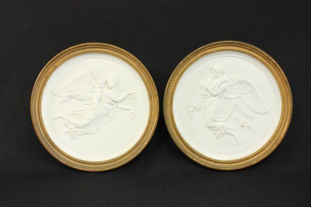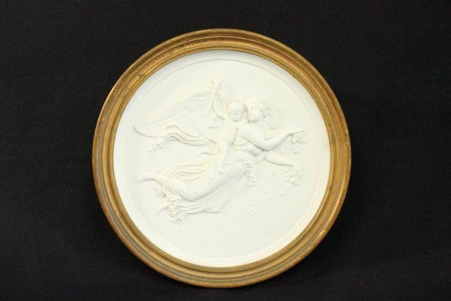 Featuring mythological scenes. Approx. 12 1/2" D. Framed. (4080)