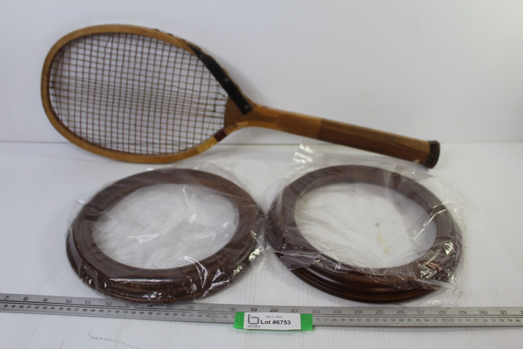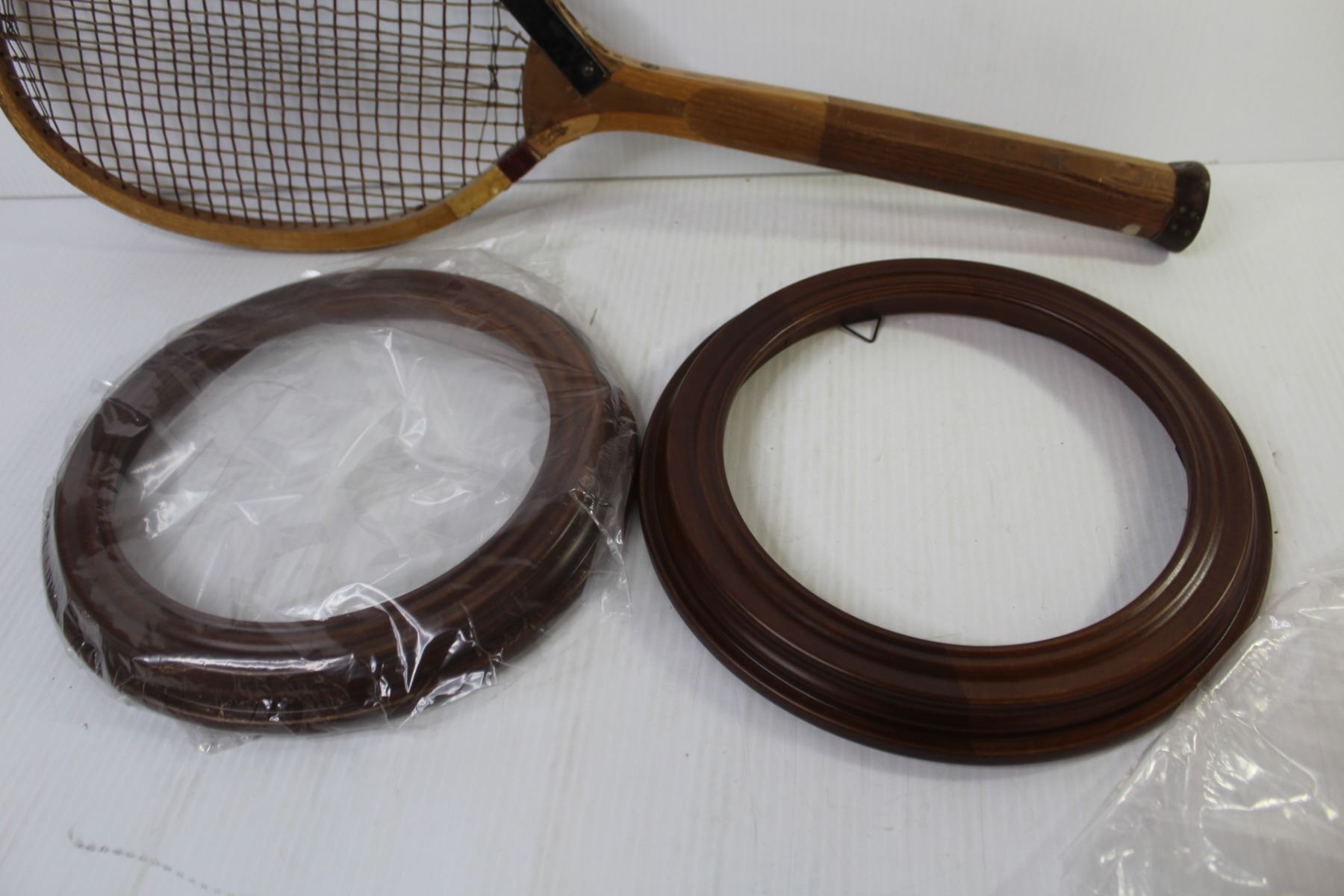 (2) Round Picture Frames (inside 8 1/2") - Broken Wooden Tennis Racket - Made in Japan