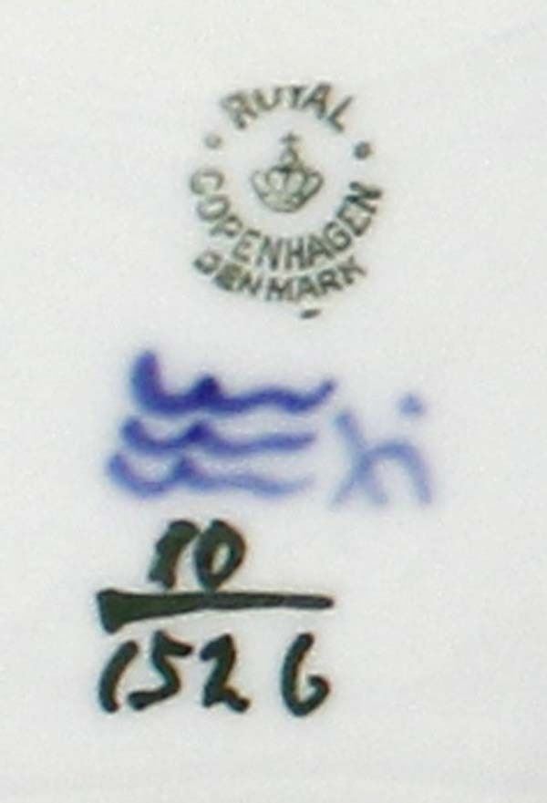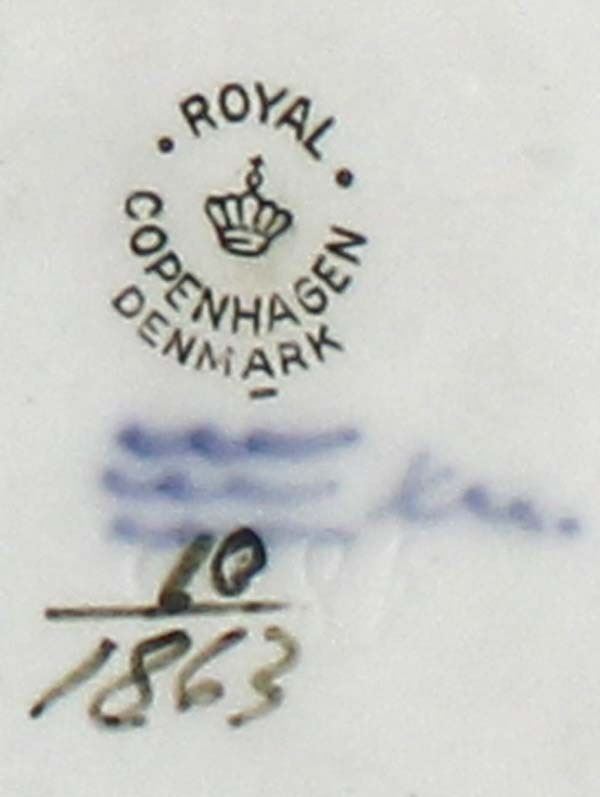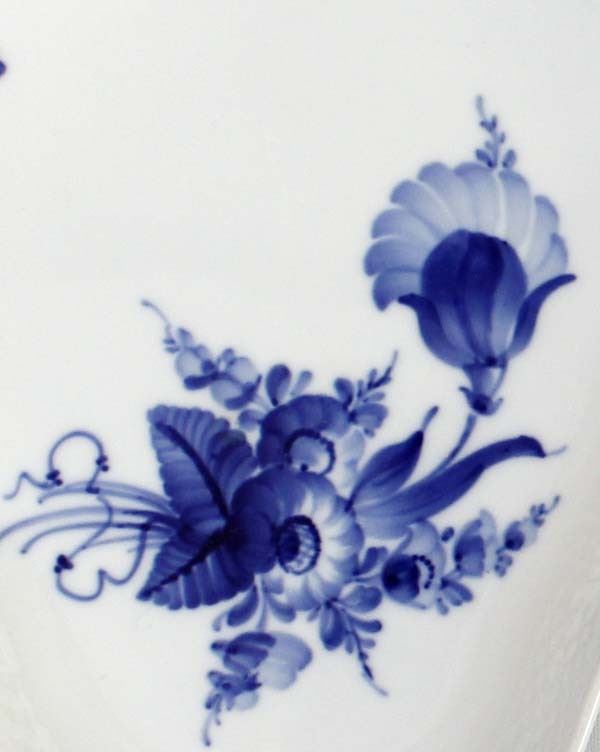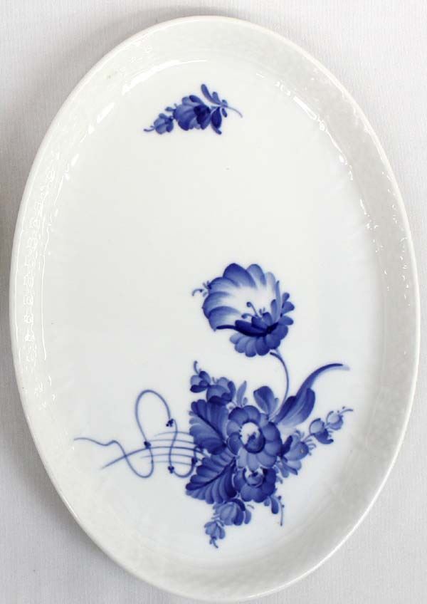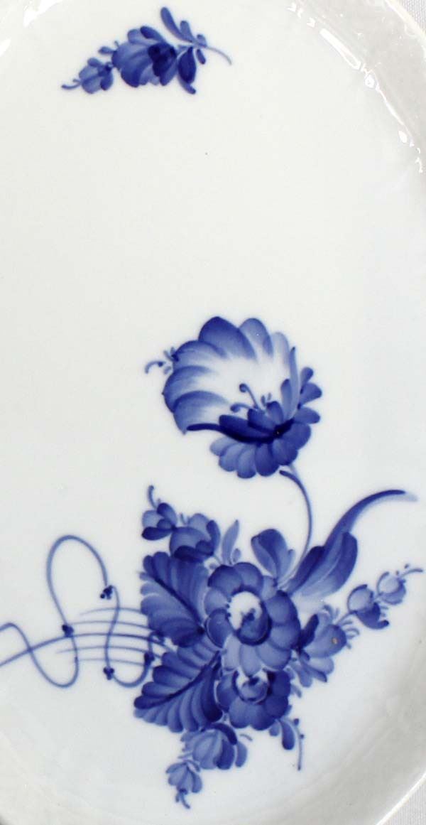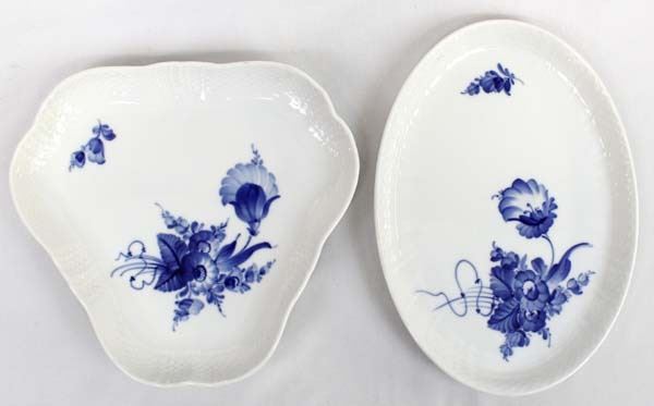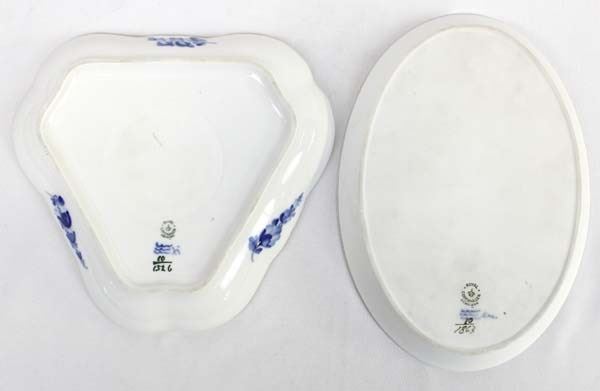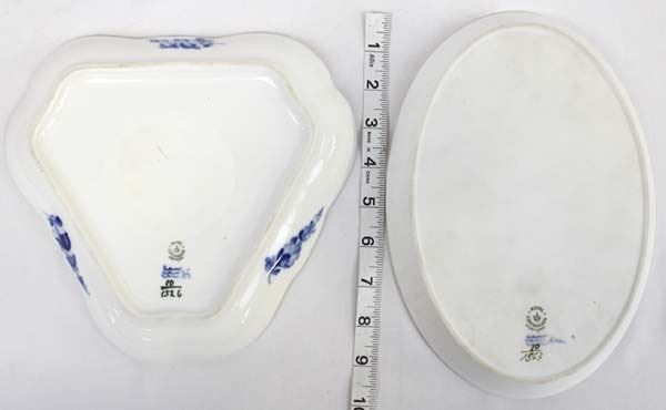 2 Royal Copenhagen Fine Porcelain Serving Plates, oval #10/1863 measures 7'' x 10'' x 1'' ca. 1962, triangular plate #10/1526 measures 8'' x 8.75'' x 1.25''H