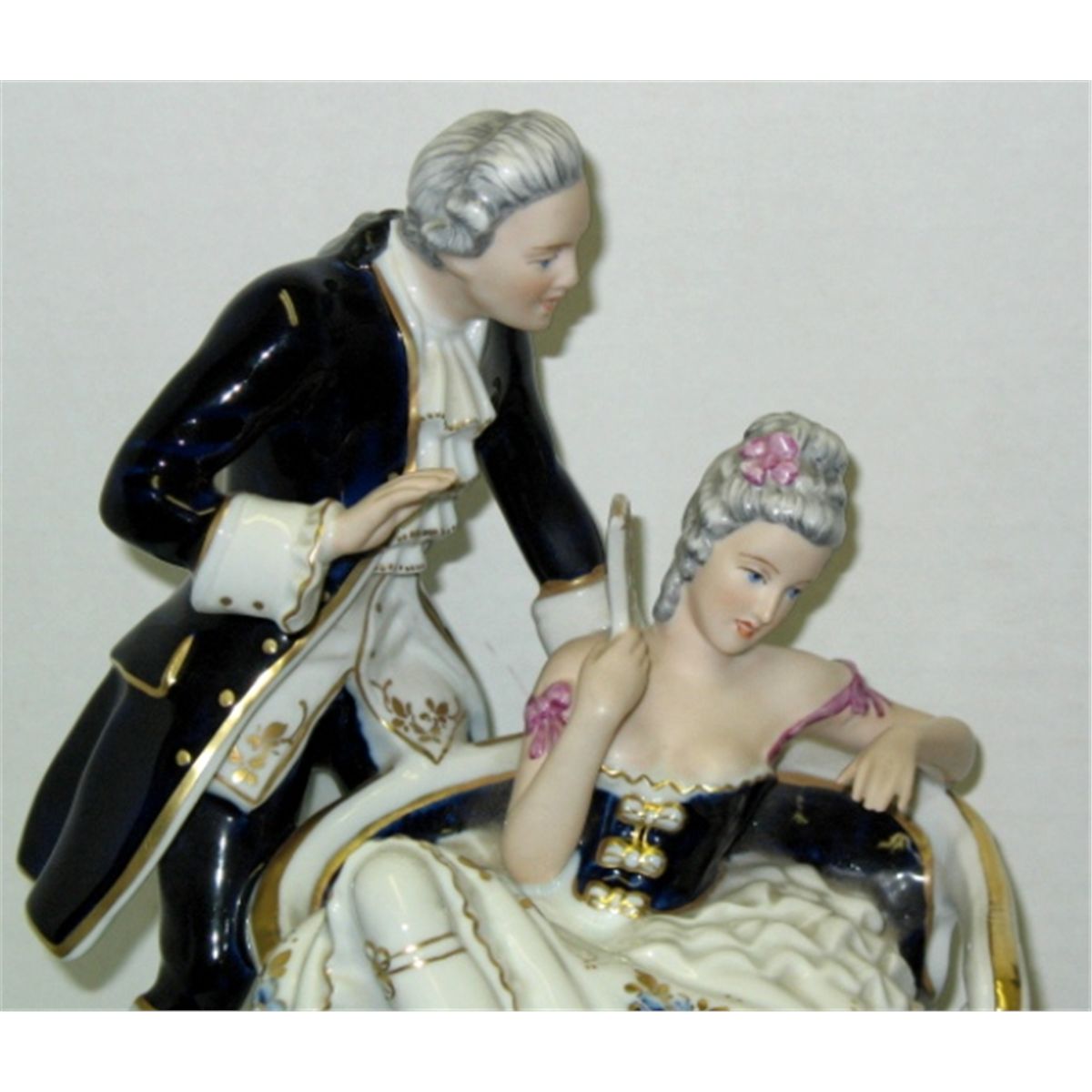 With pink triangle mark, high quality detail work  & colors, excellent original condition.  Approx.  11" H x 8.5" L x 6" D. Please read our terms of sale.