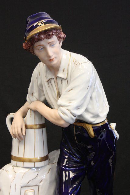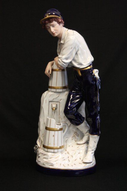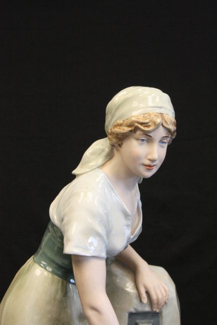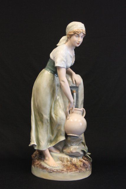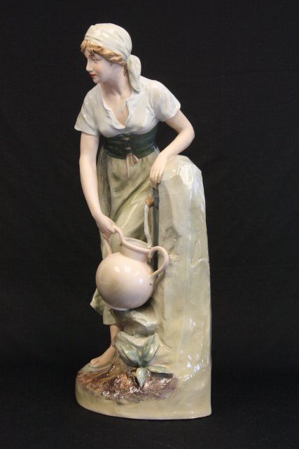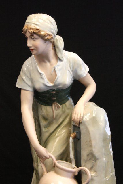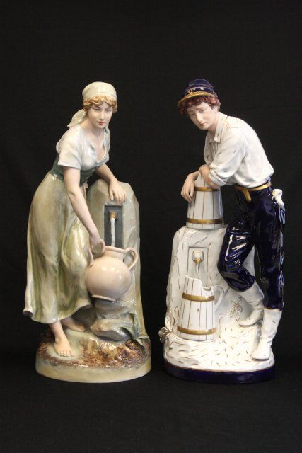 "Woman at Well with Pitcher", "Man at Well with Pitcher", 1 is signed. Approx. 24" H. Please read our terms of sale.