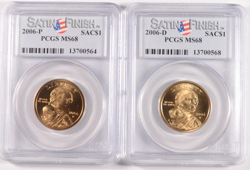 2-SACAGAWEA'S 2006 P & D, BOTH PCGS SATIN FINISH MS68