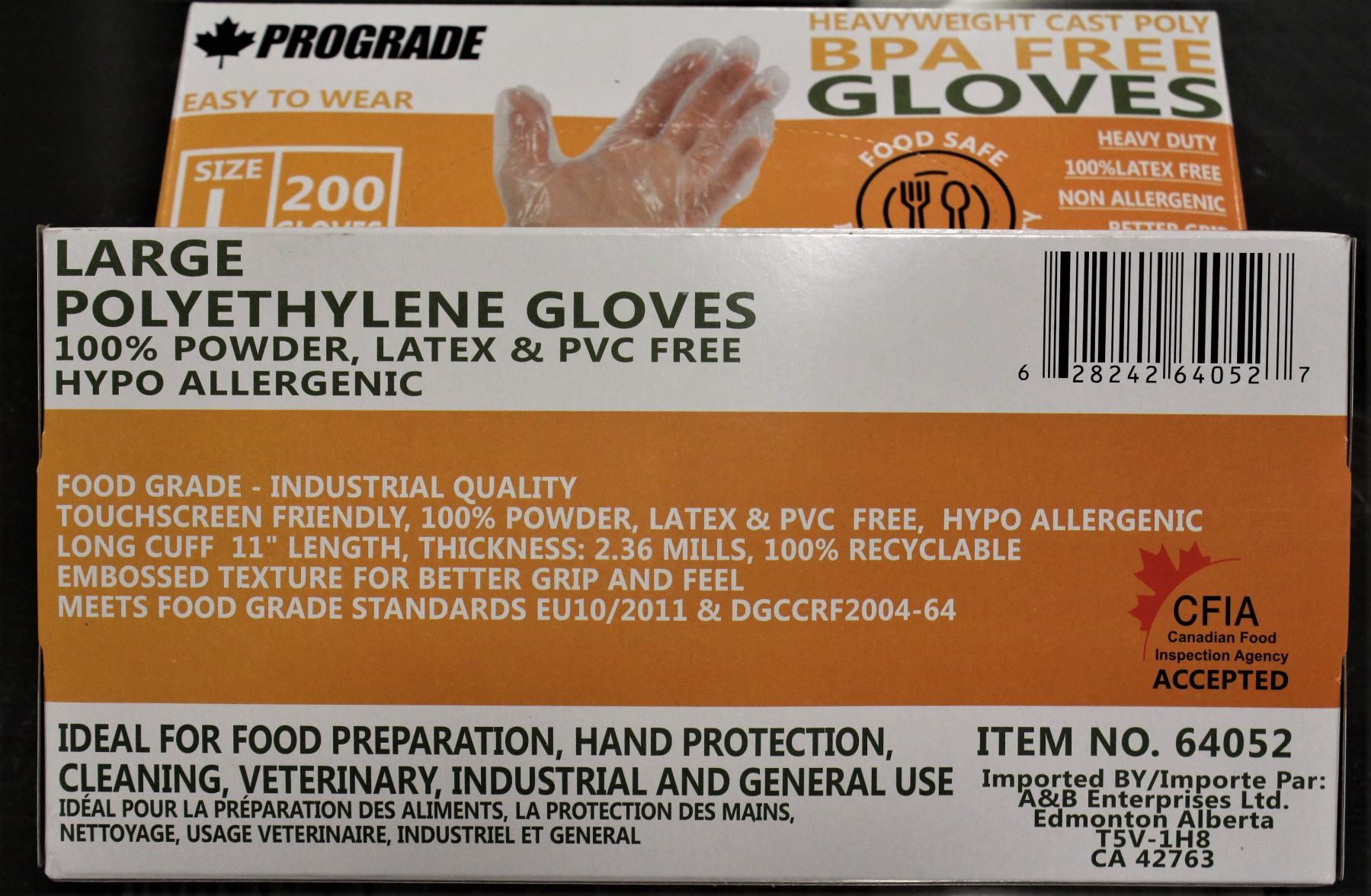 SIZE: LARGE, 200 / BOX (400 TOTAL). HEAVY DUTY INDUSTRIAL QUALITY, 2.36 MILLS THICKNESS, 100% FREE OF POWDER, LATEX & PVC. C.F.I.A. ACCEPTED. RECYCLABLE & HYPO ALLERGENIC. TOUCHSCREEN FRIENDLY.