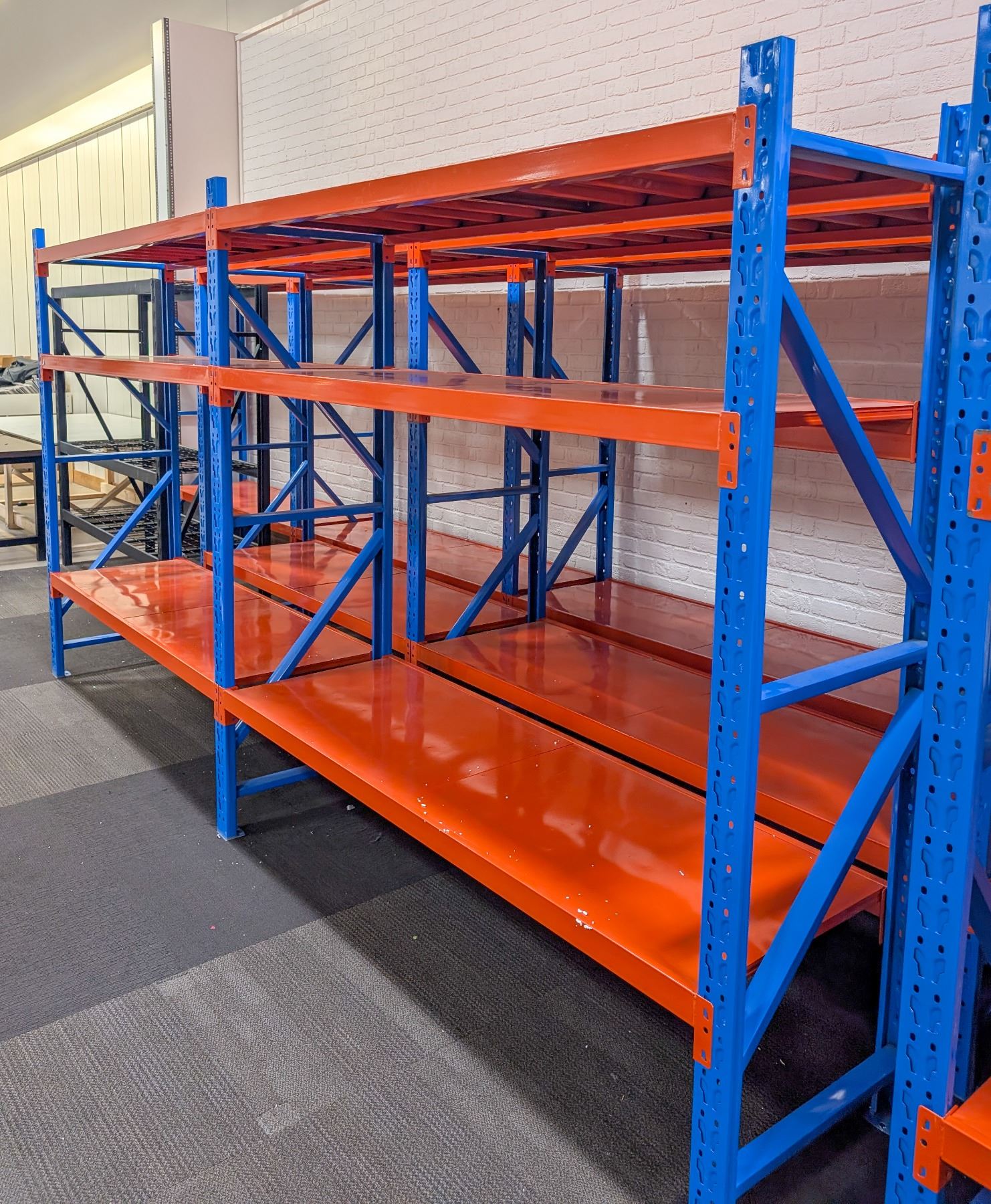 2 SECTIONS OF BLUE & ORANGE RACKING APPROX
