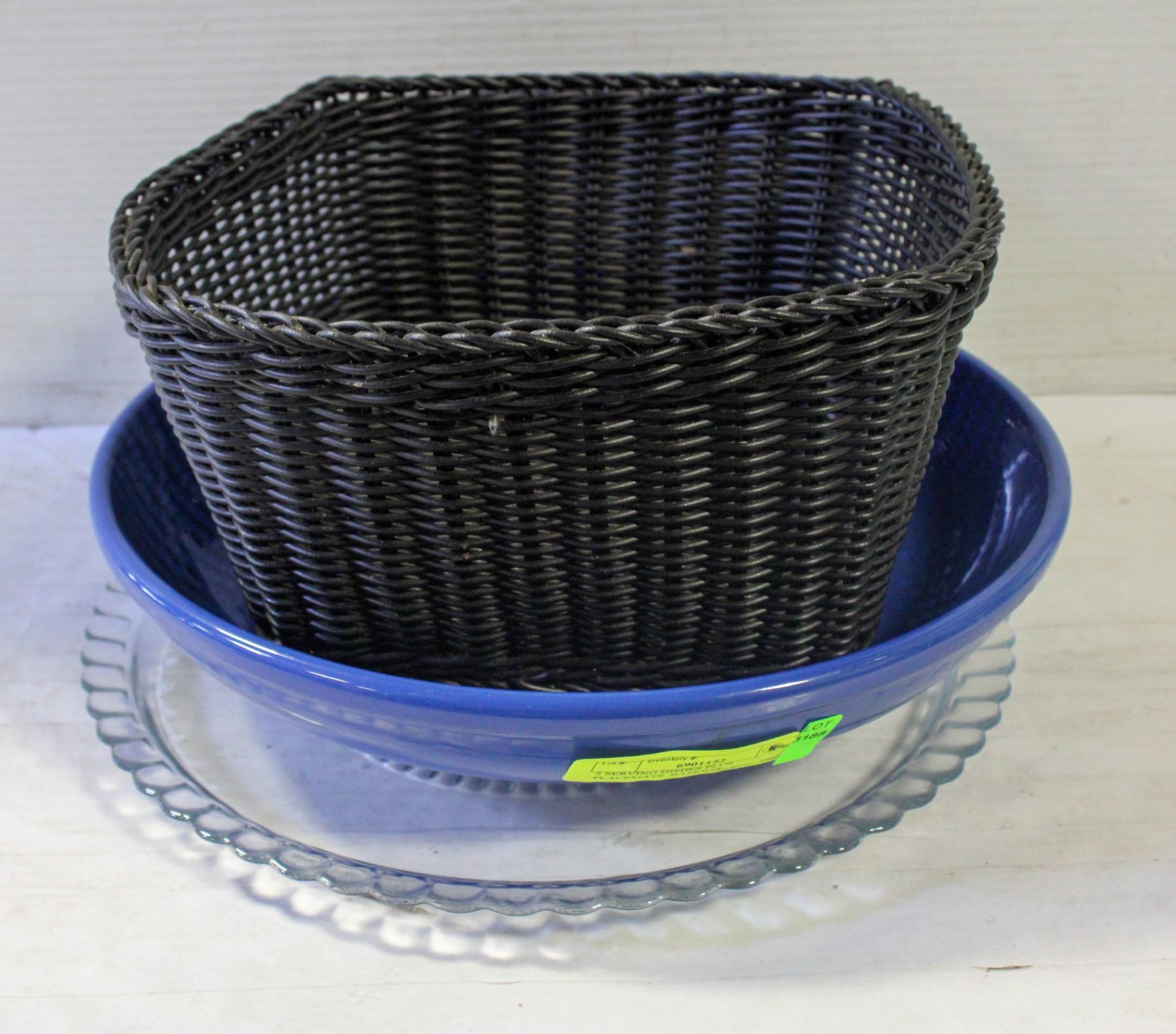 2 SERVING DISHES PLUS PLACEMATS BASKETS