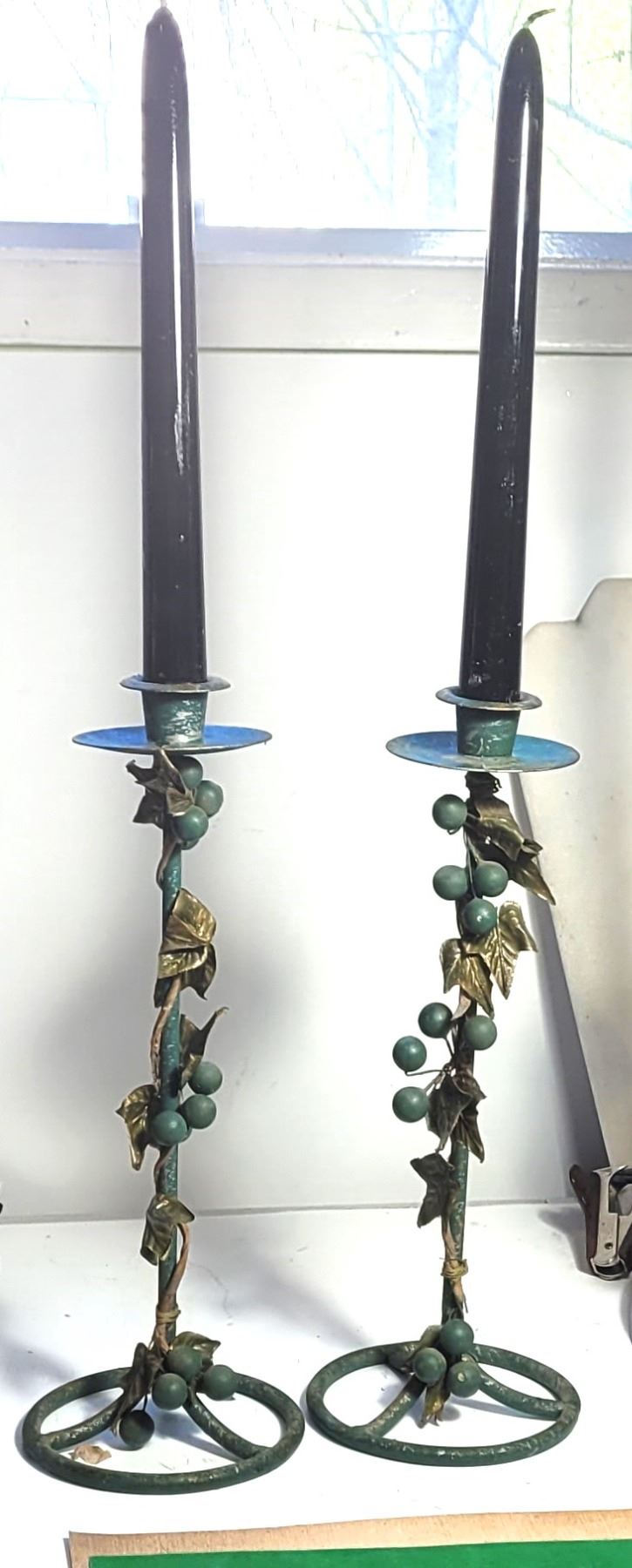 2) SET OF 2 CANDLE HOLDERS, GREEN PATINA WITH GOLD